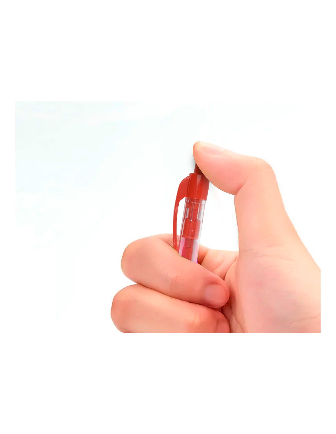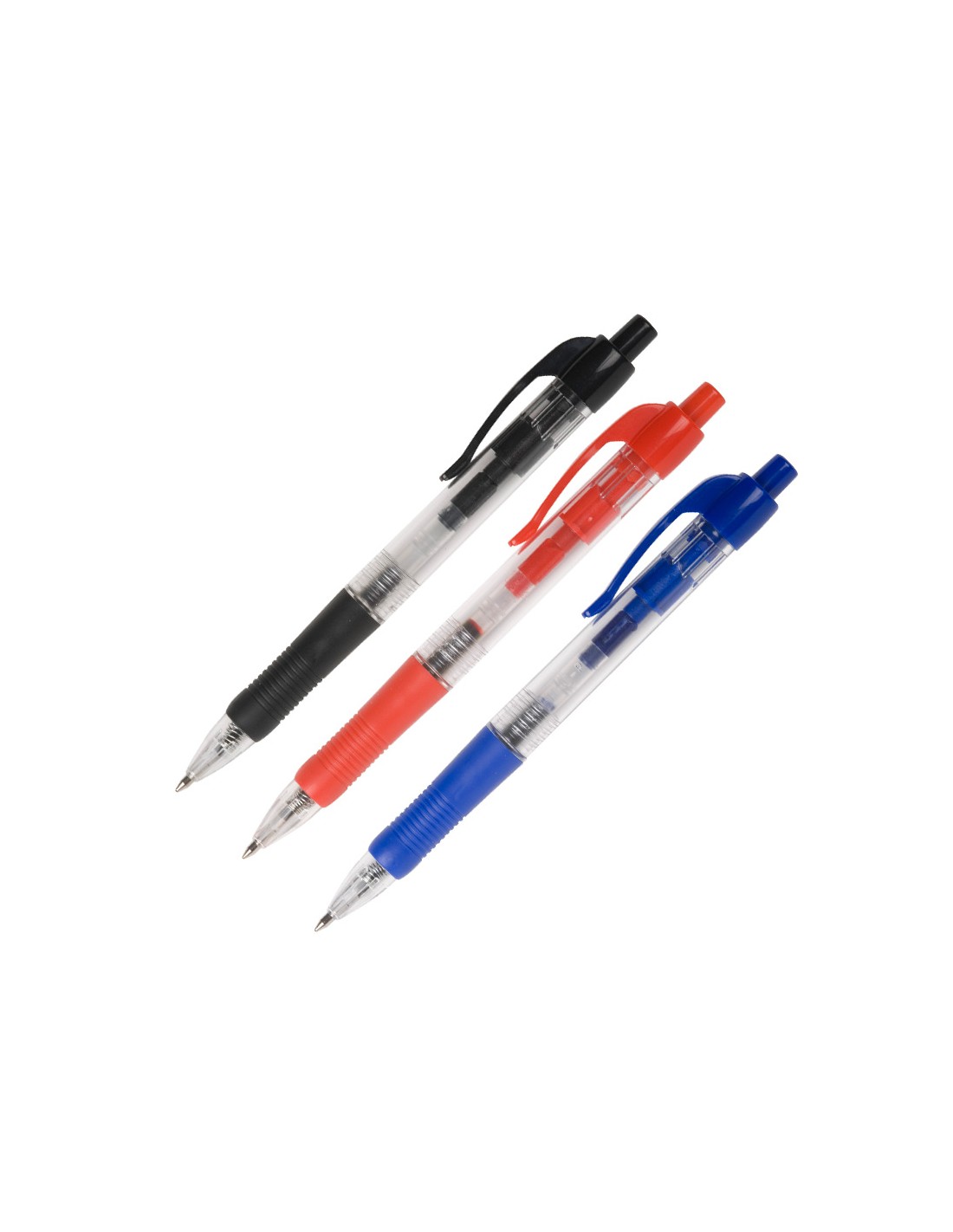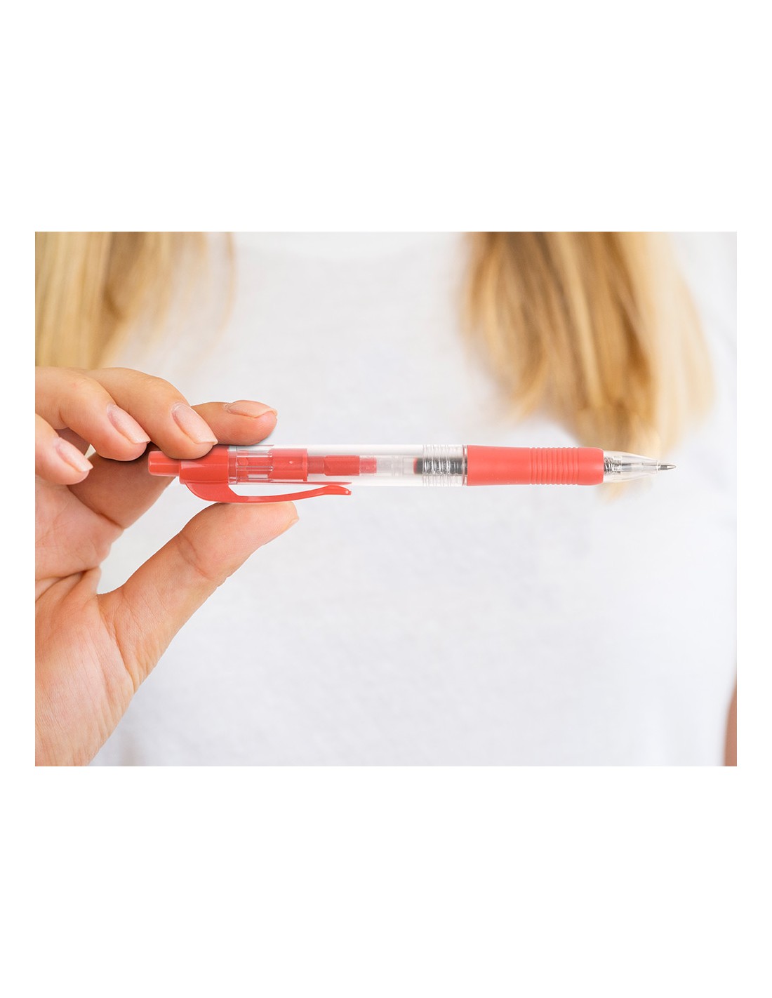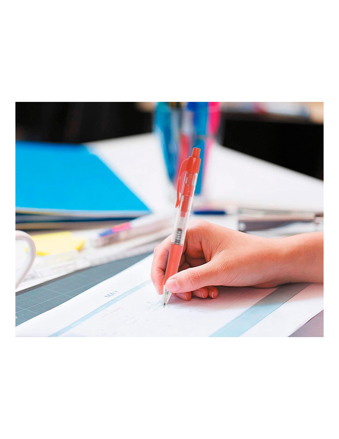 Bolígrafo retráctil con sujeción de caucho del mismo color que la tinta. Tinta a base de aceite. Cuerpo transparente que permite ver el nivel de la tinta. Punta de 1 mm. Trazo de 0,7 mm.