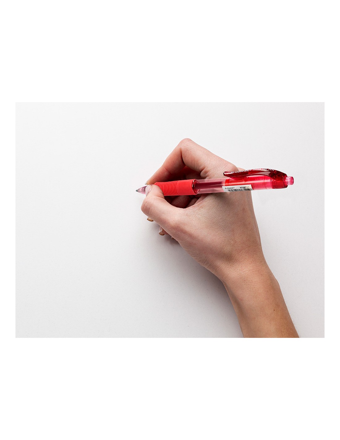 Bolígrafo retráctil. Tinta gel, secado rápido. Barril de plástico translúcido que permite ver el nivel de tinta. Empuñadura de goma antideslizante para un mejor agarre y fácil escritura. Punta de 0,7 mm. Línea de 0,5 mm.