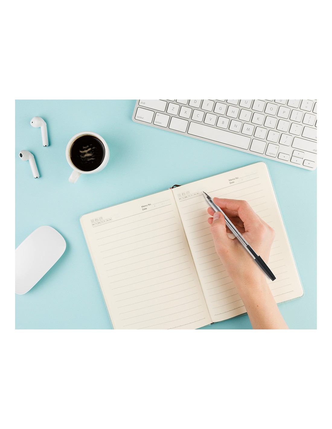 Tinta a base de aceite. Cuerpo transparente que permite ver el nivel de la tinta. Gran suavidad de escritura. Capuchón del color de la tinta. Punta media de 1 mm. Trazo de 0,7 mm.