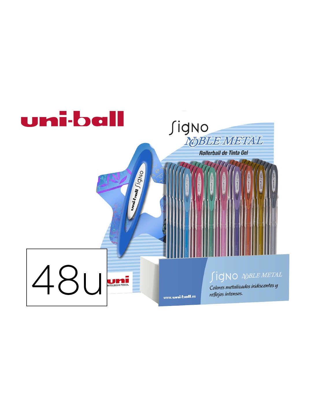 Boligrafo uni ball um-120 signo 0,7 mm tinta gel expositor de 48 colores metalizados