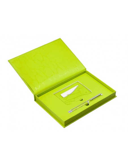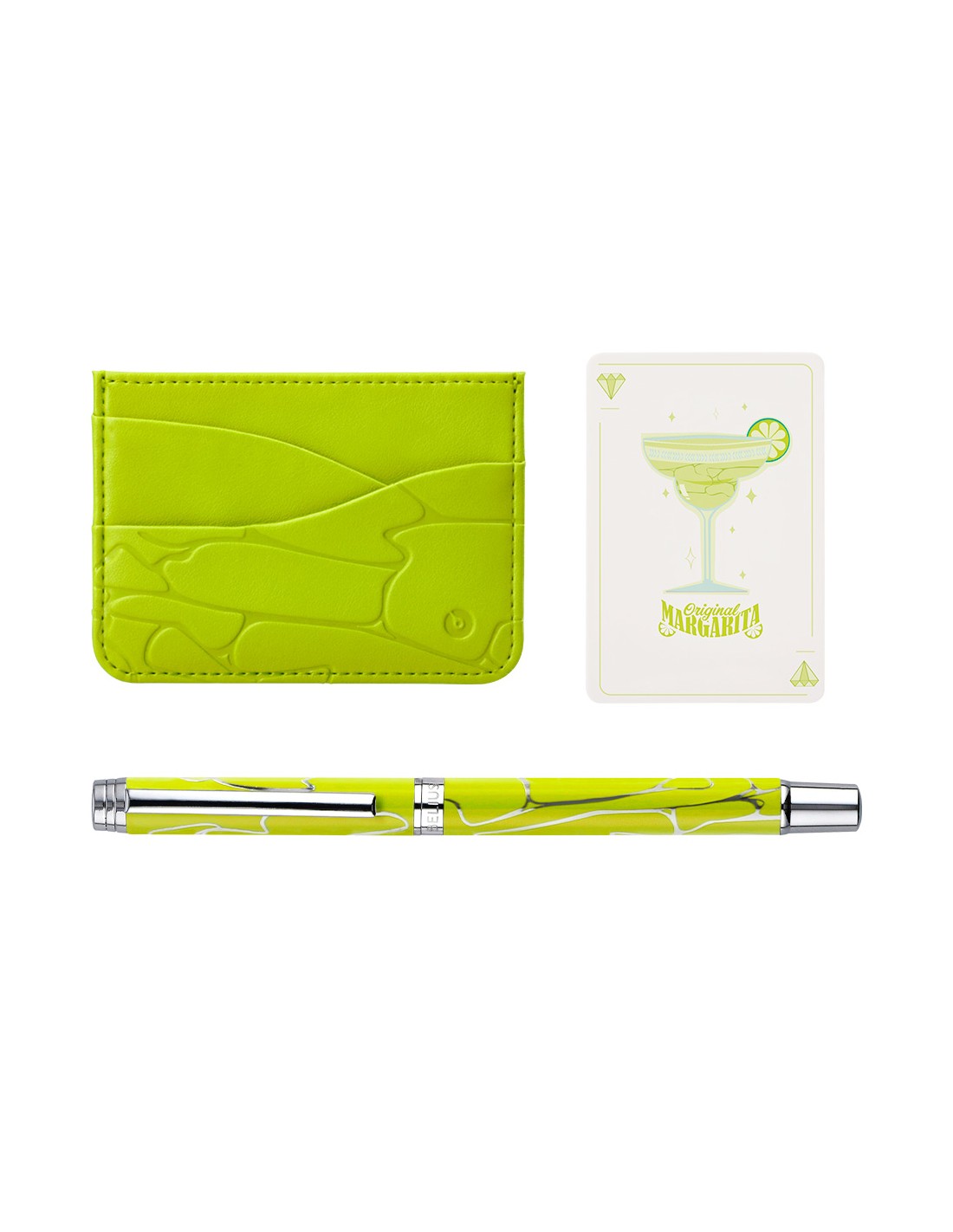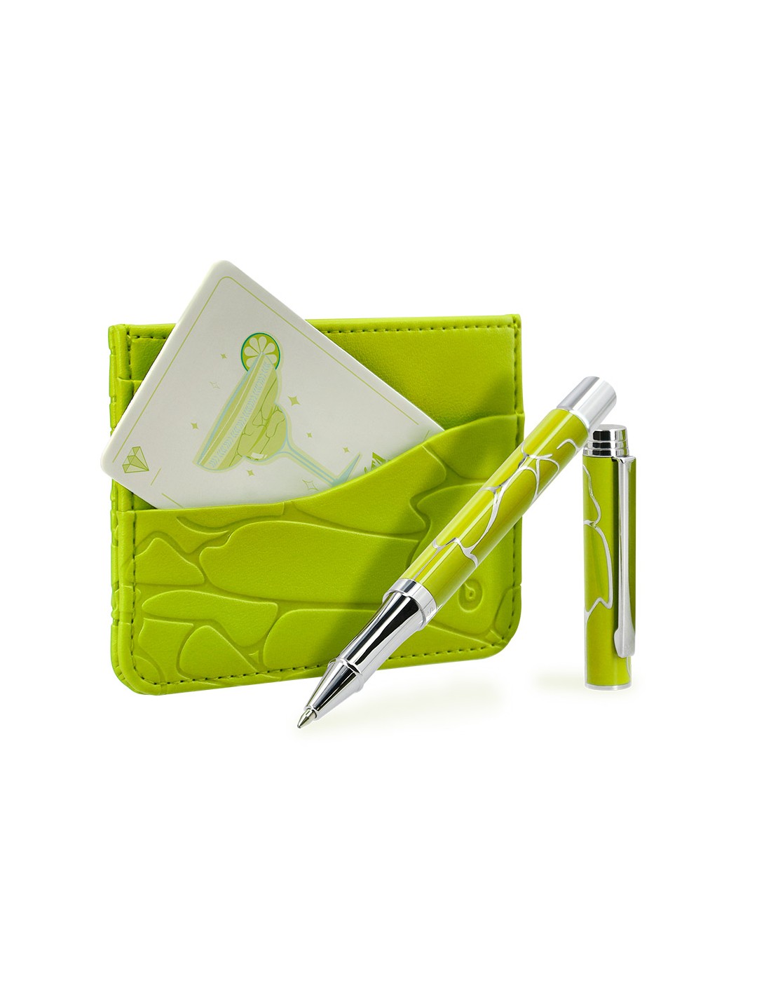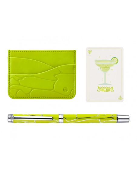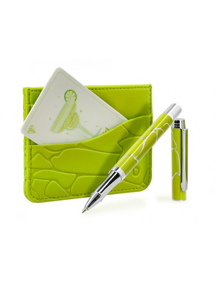 Boligrafo belius cocktails margarita aluminio verde lima plateado relieve tinta color azul caja de diseño