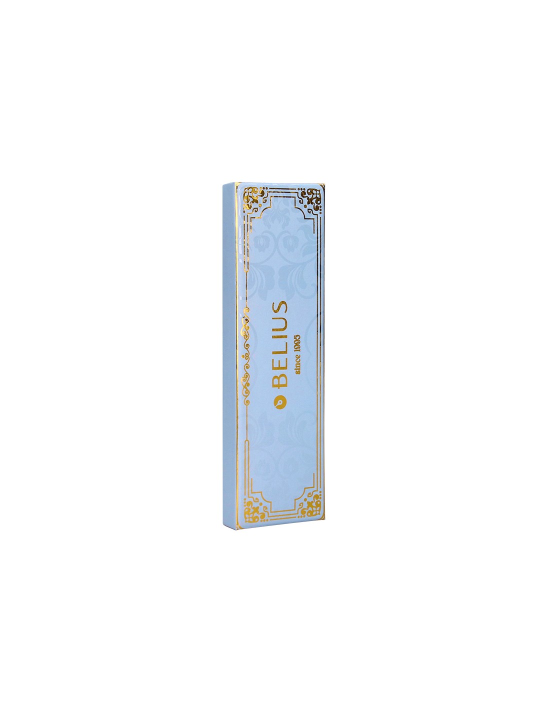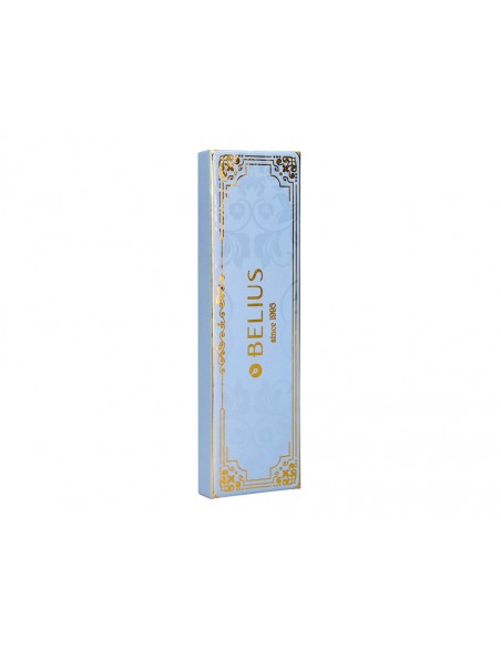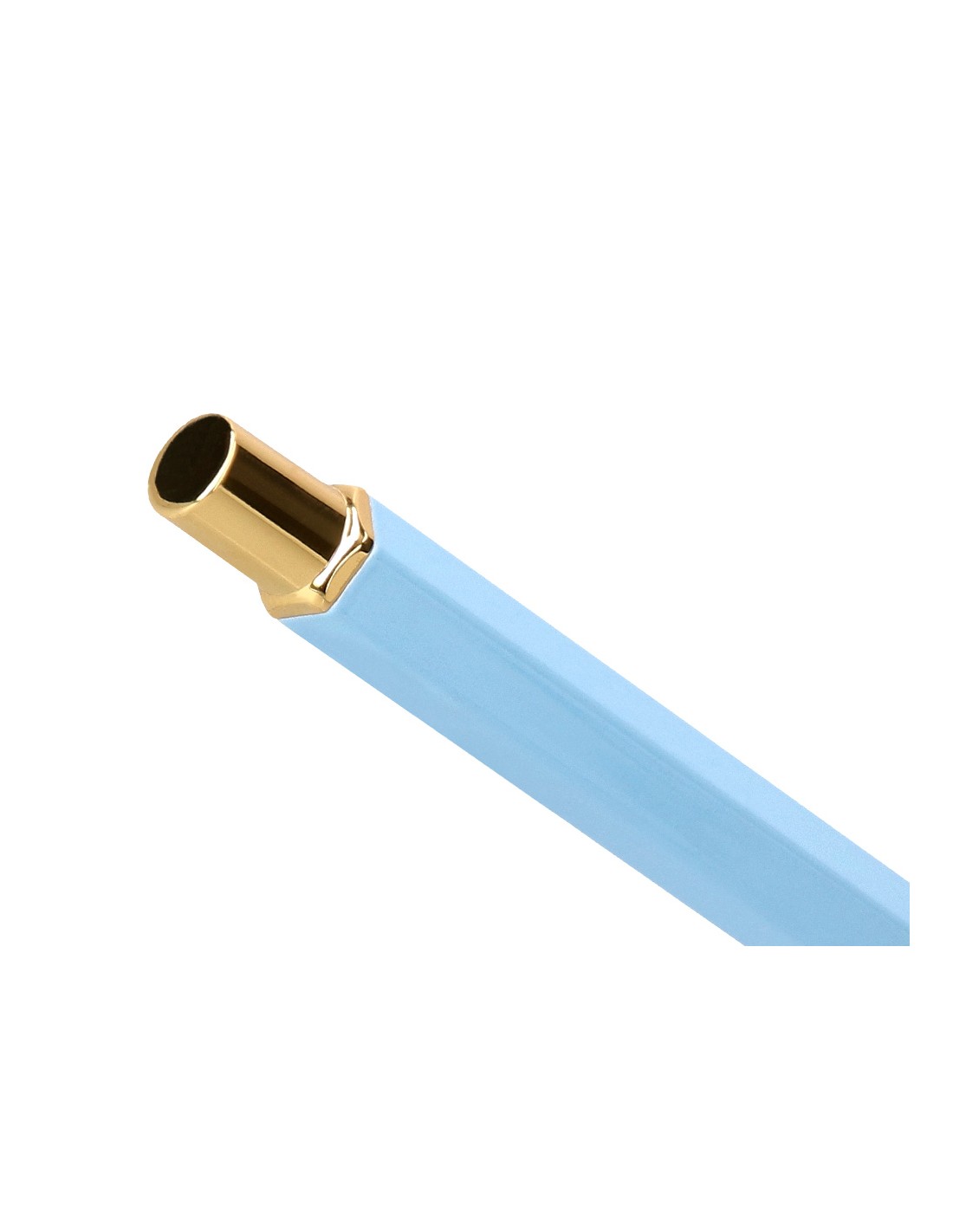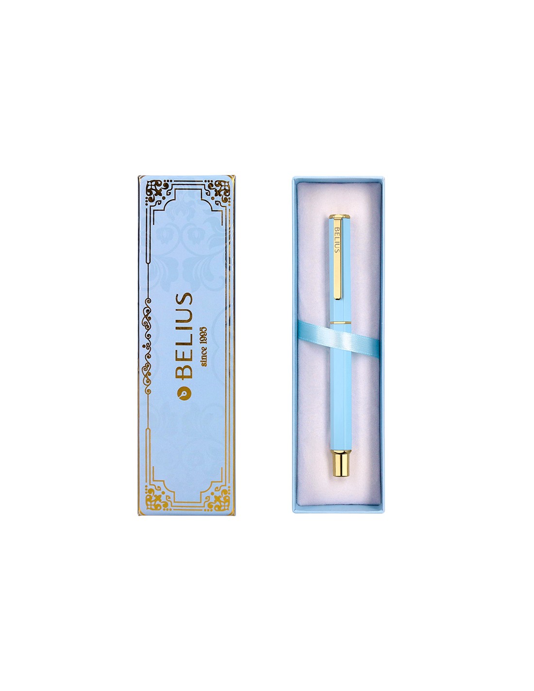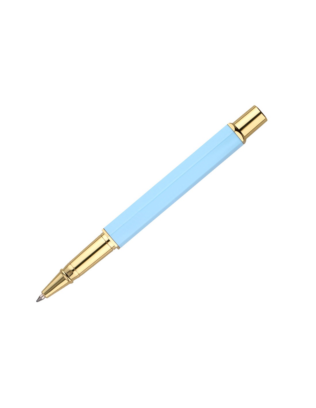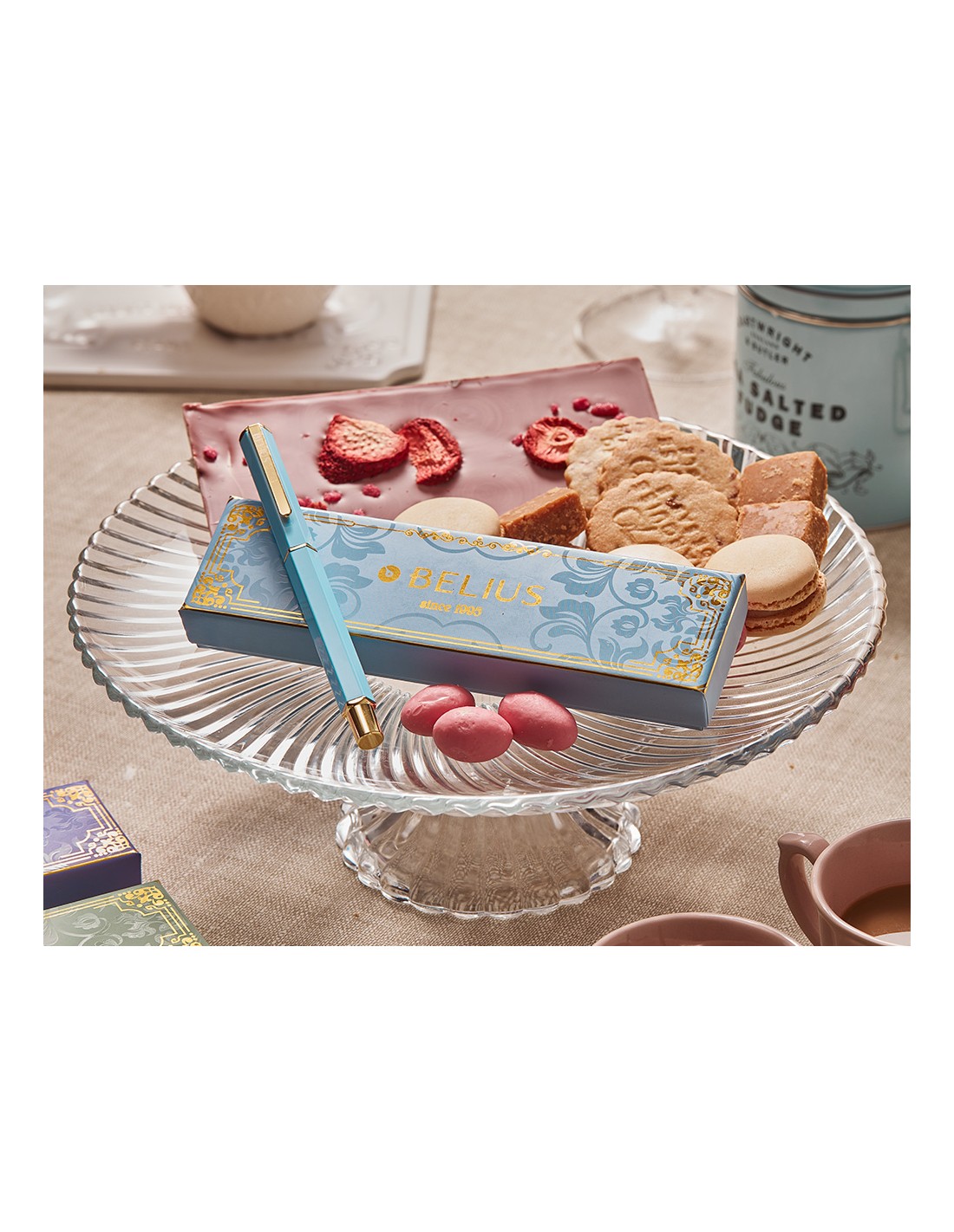 Boligrafo belius macaron bliss forma hexagonal color celeste y dorado tinta azul caja de diseño