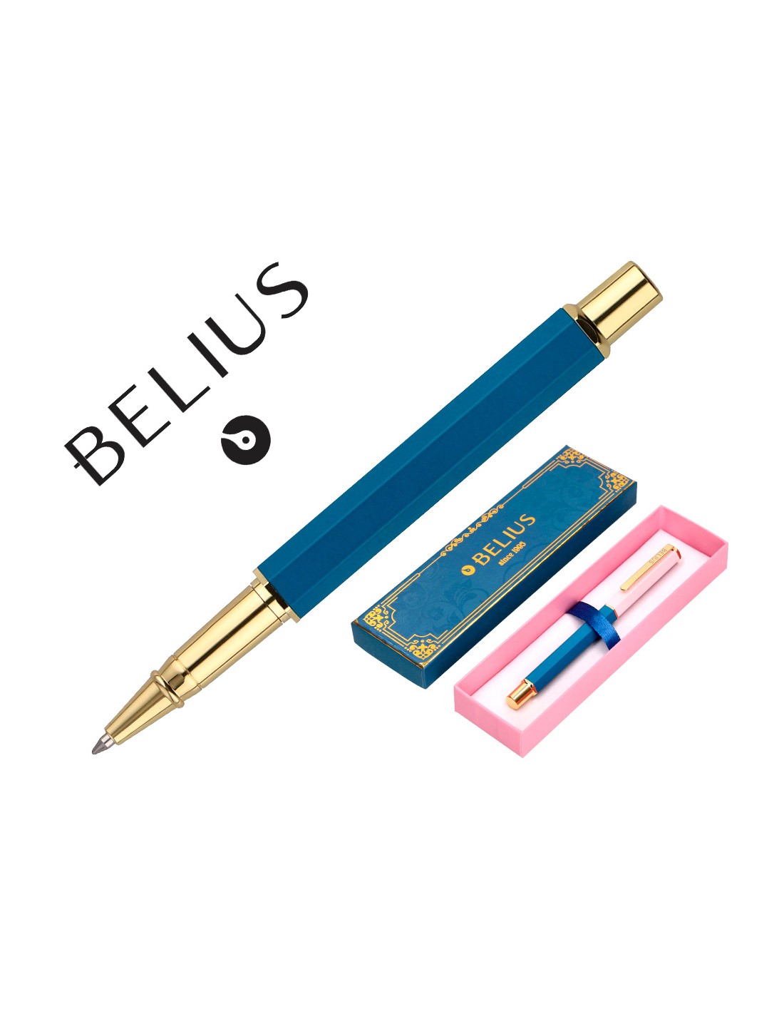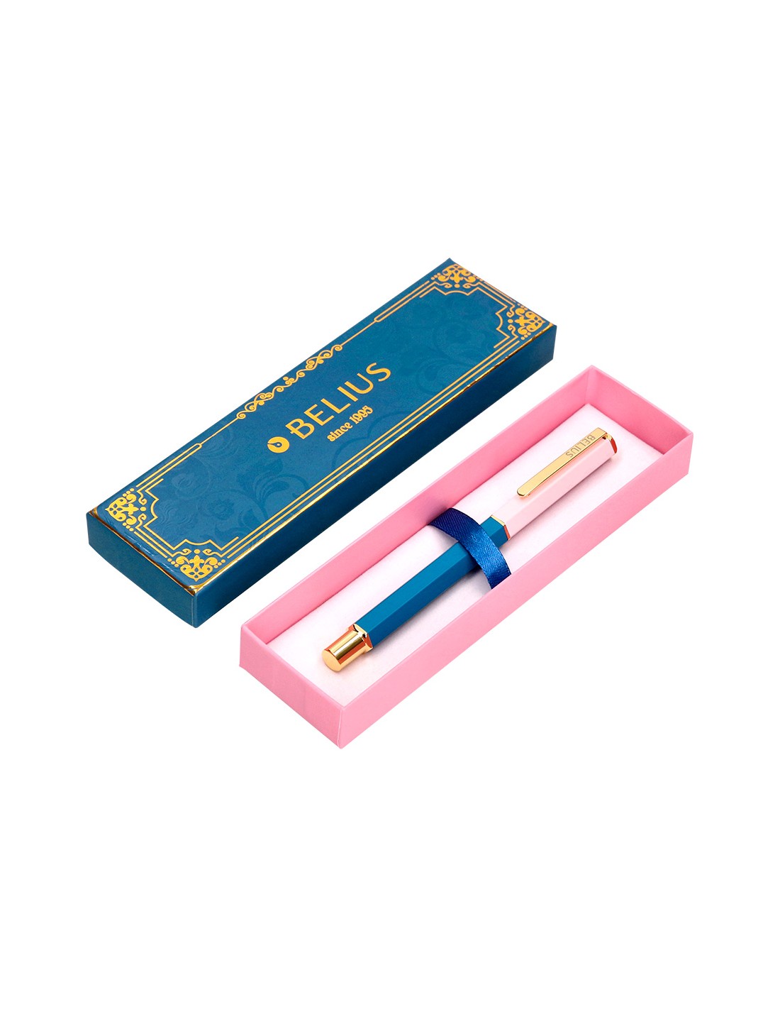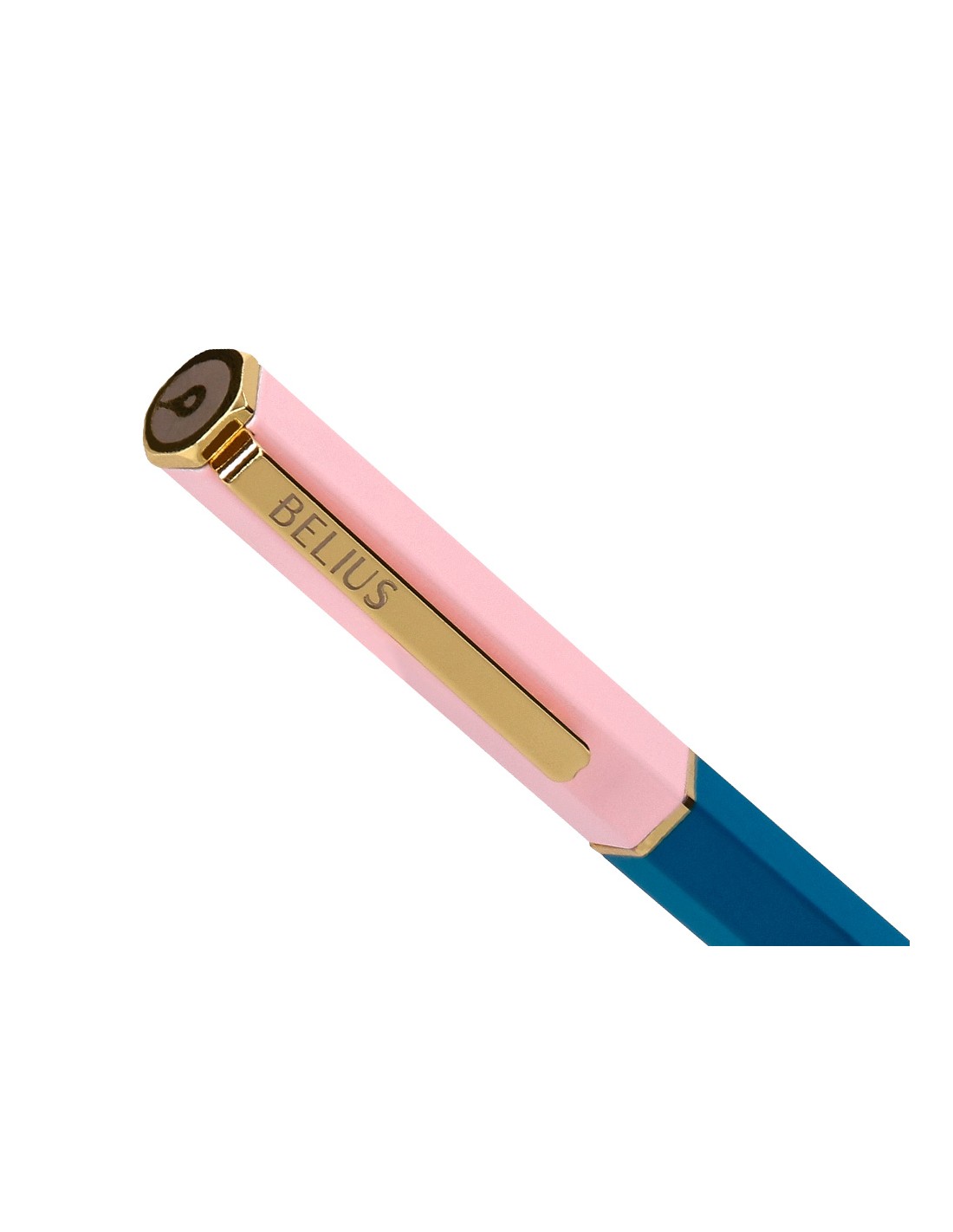 Boligrafo belius macaron bliss forma hexagonal color rosa/ azul y dorado tinta azul caja de diseño