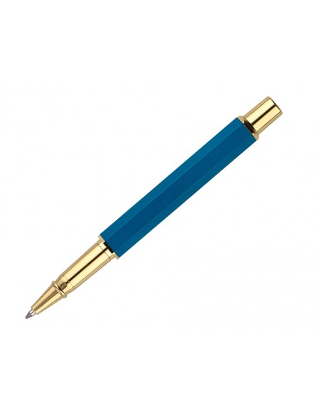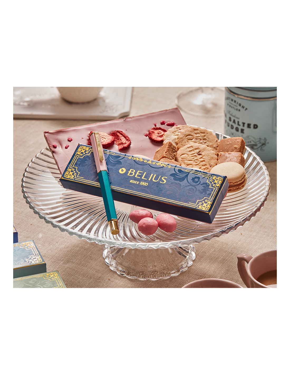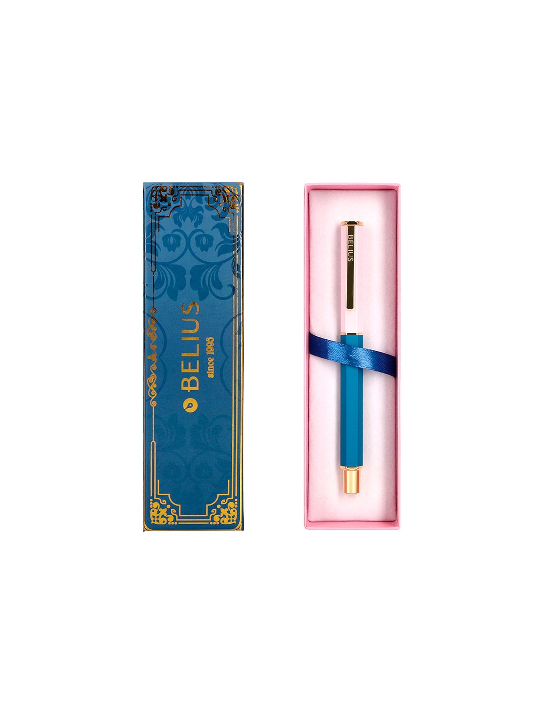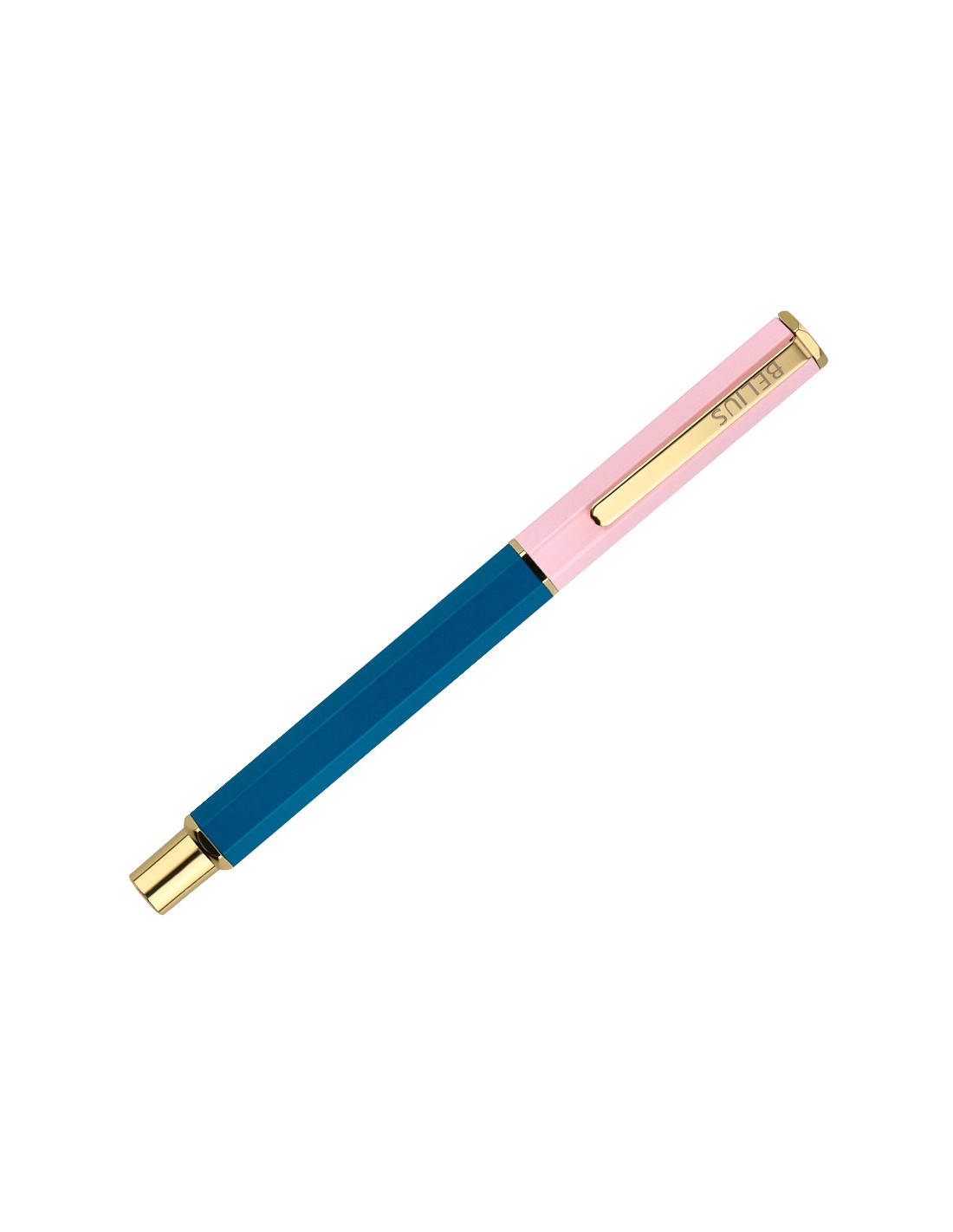 Boligrafo belius macaron bliss forma hexagonal color rosa/ azul y dorado tinta azul caja de diseño