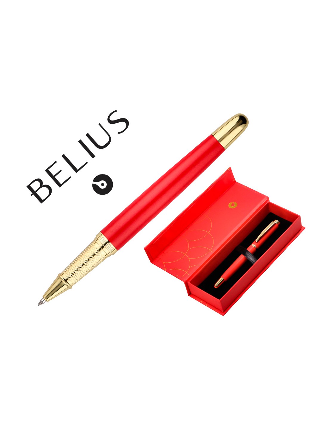 Boligrafo belius passion dor aluminio textura cepillada color rojo y dorado tinta azul caja de diseño
