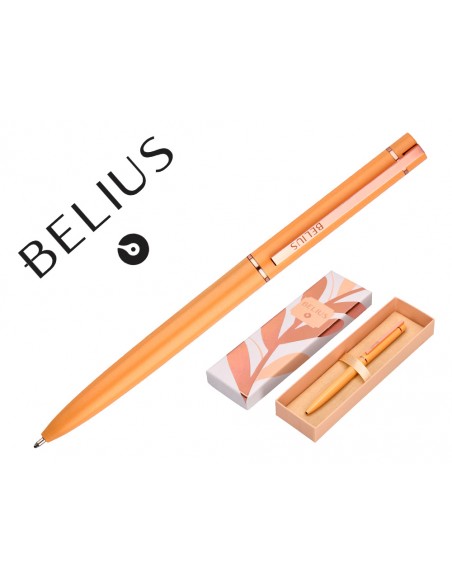 Boligrafo belius rose aluminio color naranja/oro rosa tinta azul caja de diseño