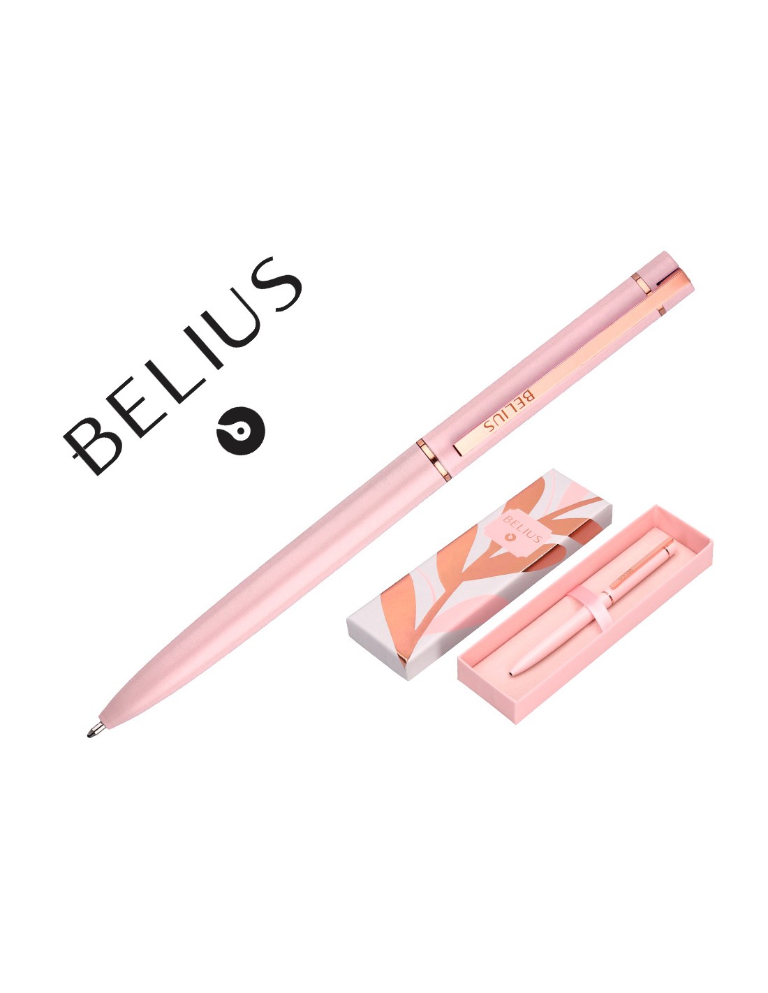 Boligrafo belius rose aluminio color rosa/oro rosa tinta azul caja de diseño