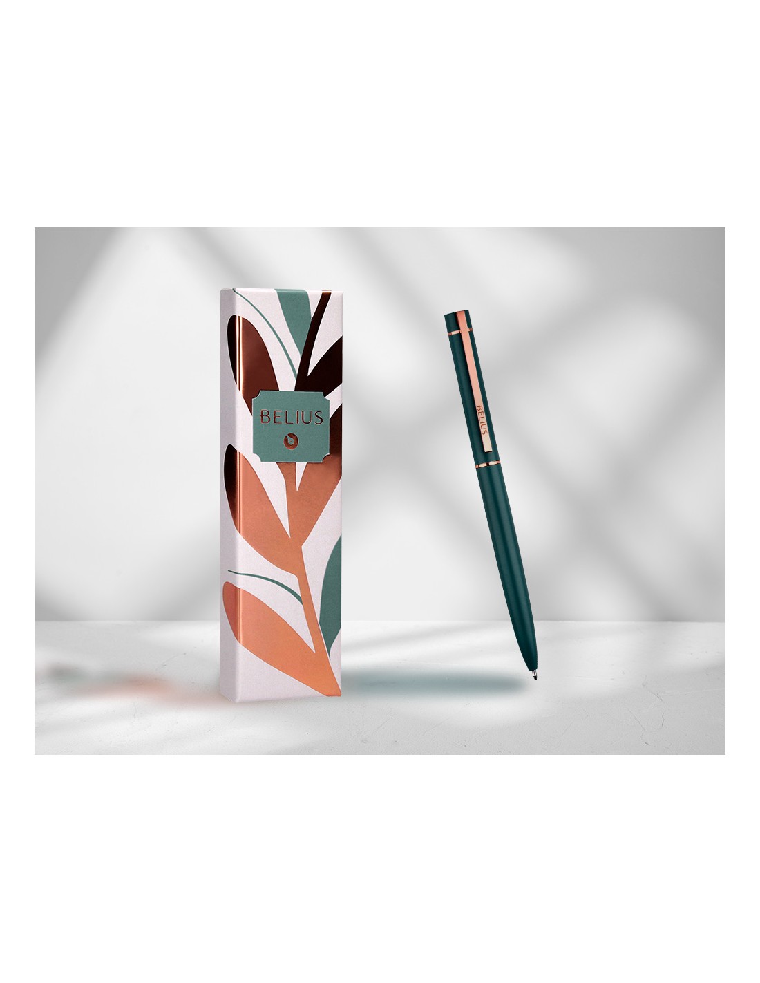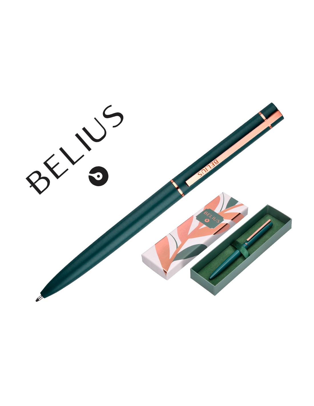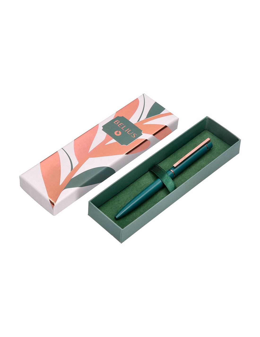 Boligrafo belius rose aluminio color verde oliva/oro rosa tinta azul caja de diseño