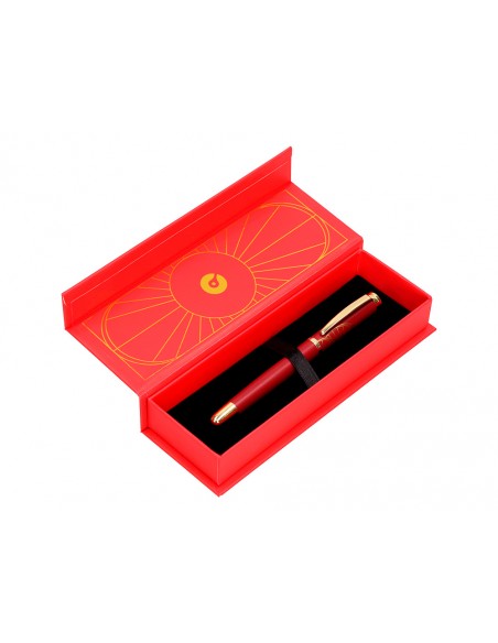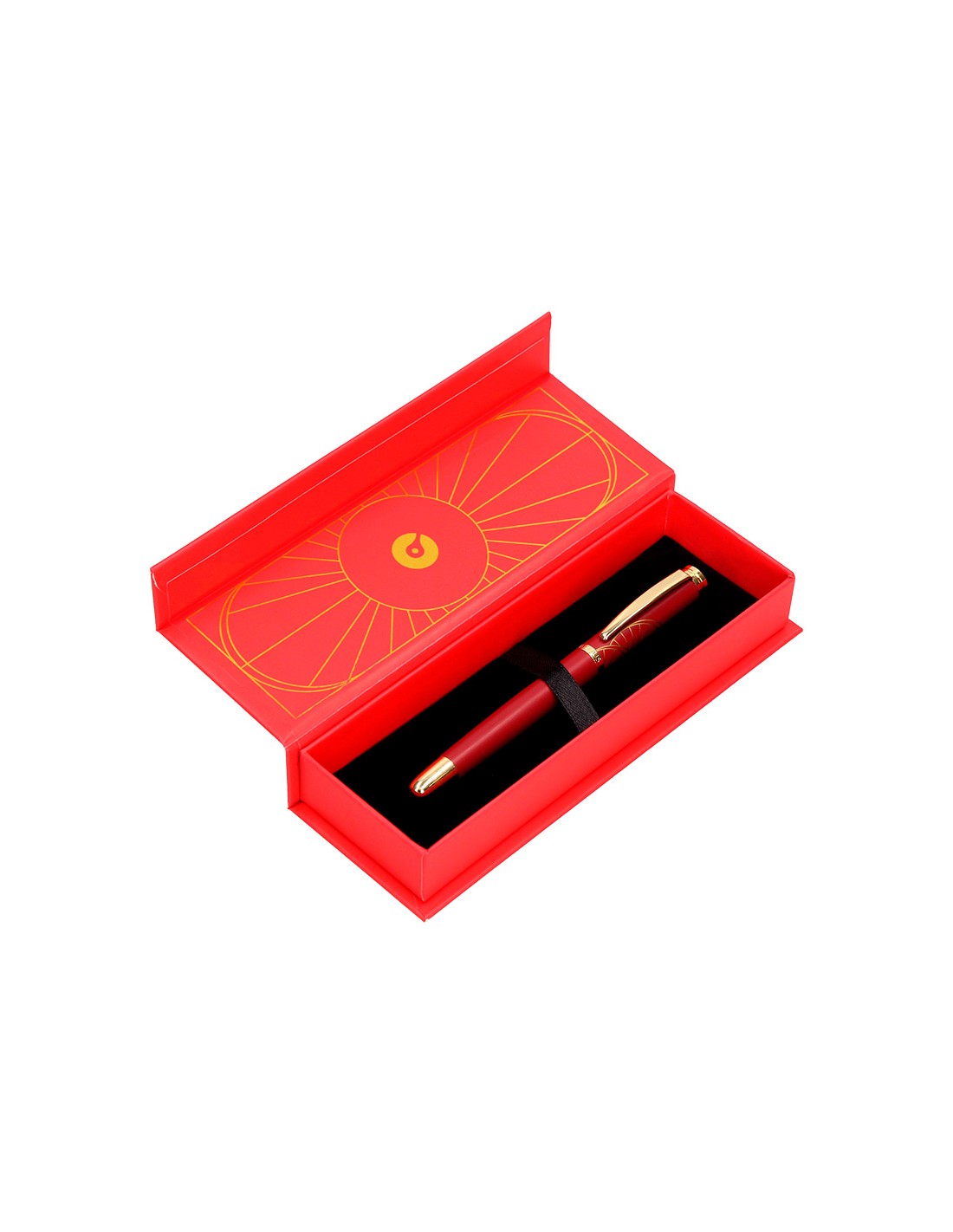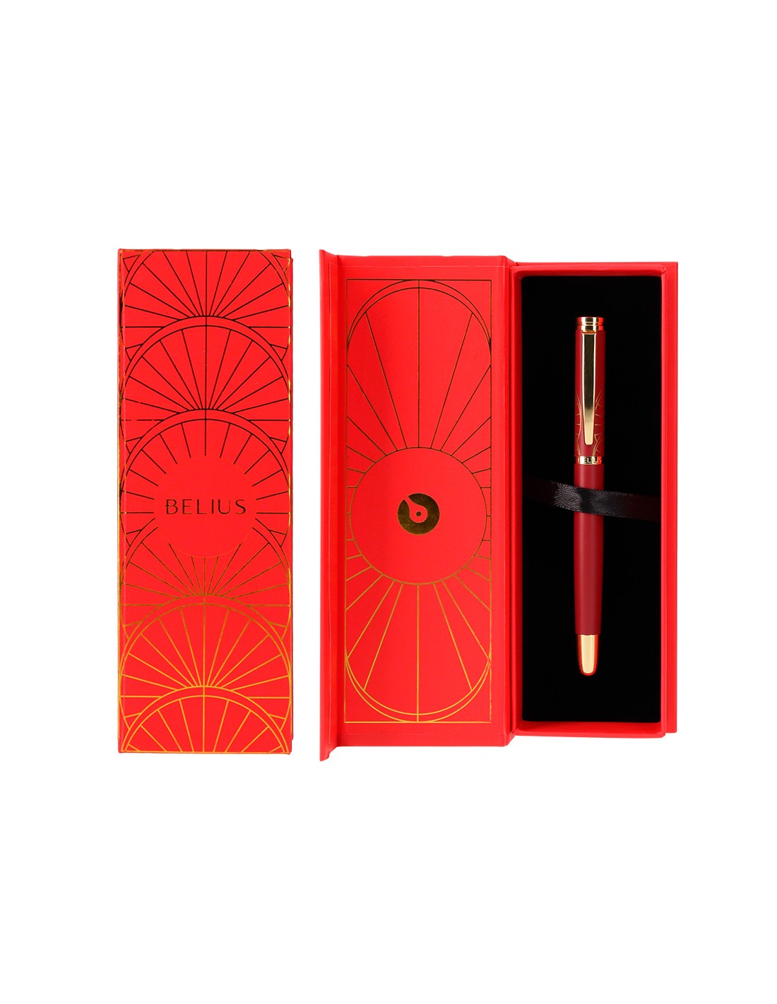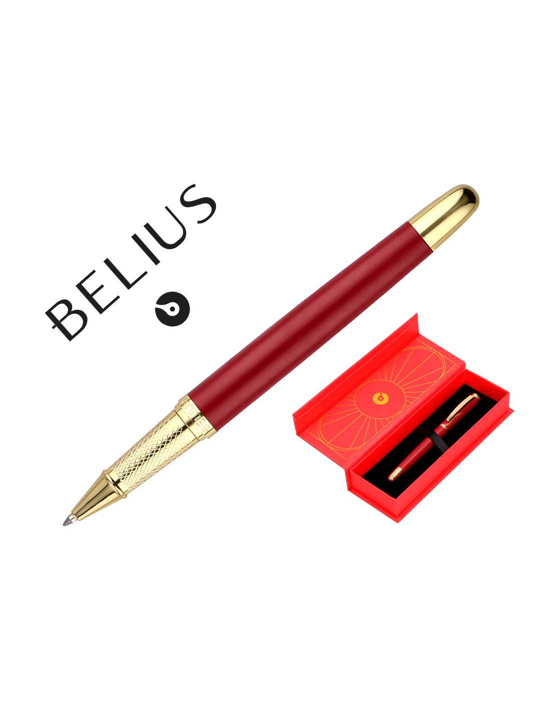 Boligrafo belius soiree aluminio color art deco granate y dorado tinta azul caja de diseño