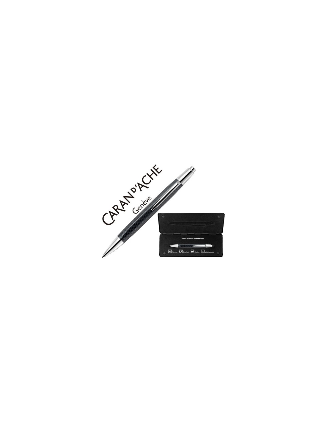 Boligrafo caran d ache alchemix cuerpo fibra de carbono adornos cromados brillante con estuche punta