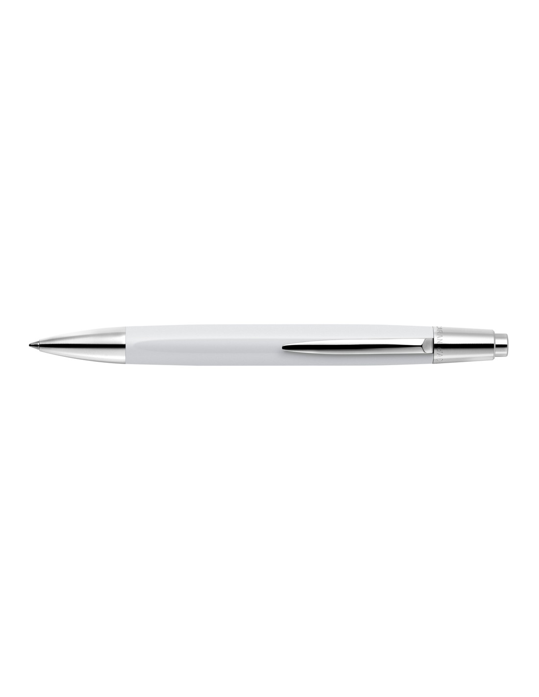 Boligrafo caran d ache alchemix cuerpo laca blanca adornos cromados brillante con estuche punta media