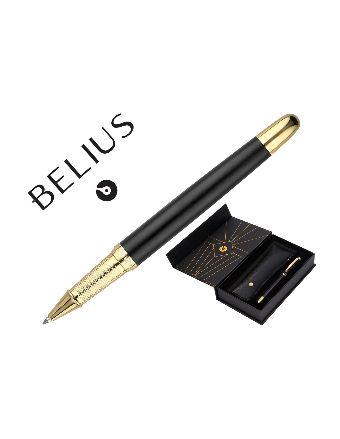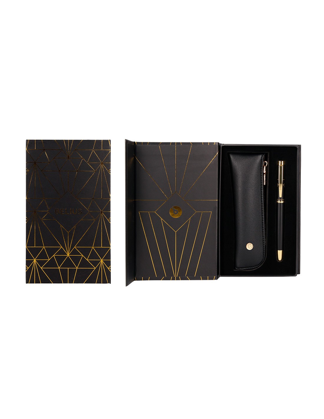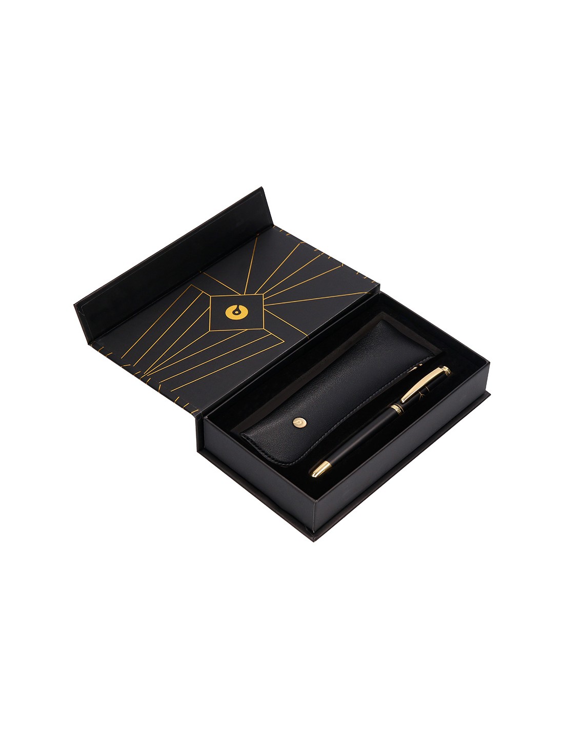 Boligrafo y estuche belius soiree color negro y dorado tinta azul caja de diseño