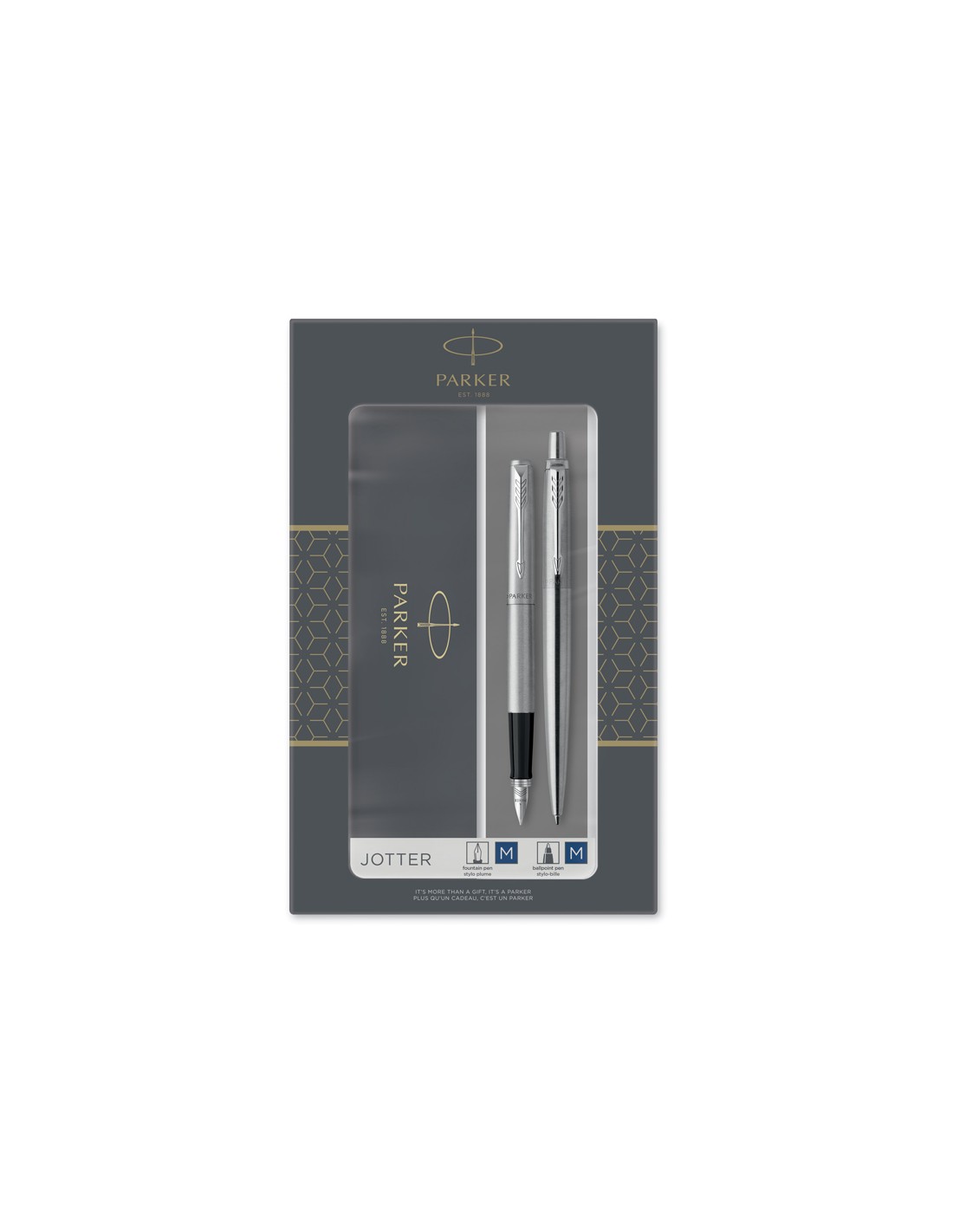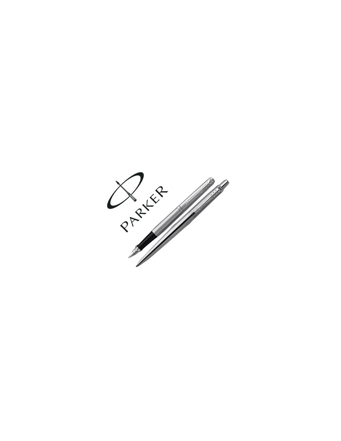 Pluma Parker Jotter. Diseño icónico de Jotter, con capuchón de acero inoxidable. El plumín está realizado en acero inoxidable. Los adornos tienen acabados cromados. Carga con cartuchos Parker. Presentación en estuche de Parker Jotter.