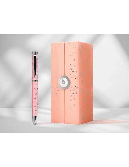 Roller belius coleccion1 aluminio color rosa diseño plateado relieve tinta color negro caja de diseño