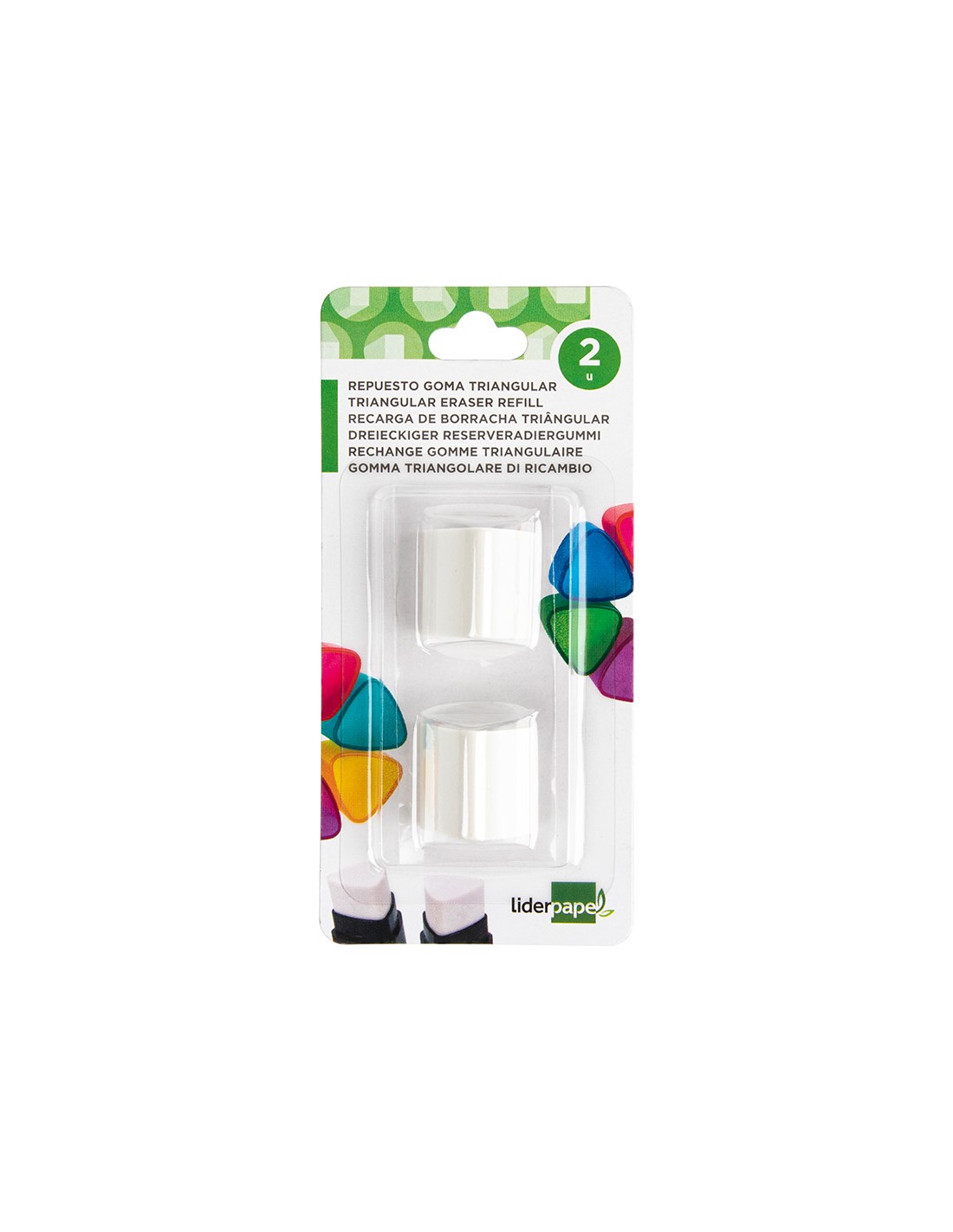 LIDERPAPELRepuesto goma liderpapel triangular con sacapuntas blister de 2 unidades