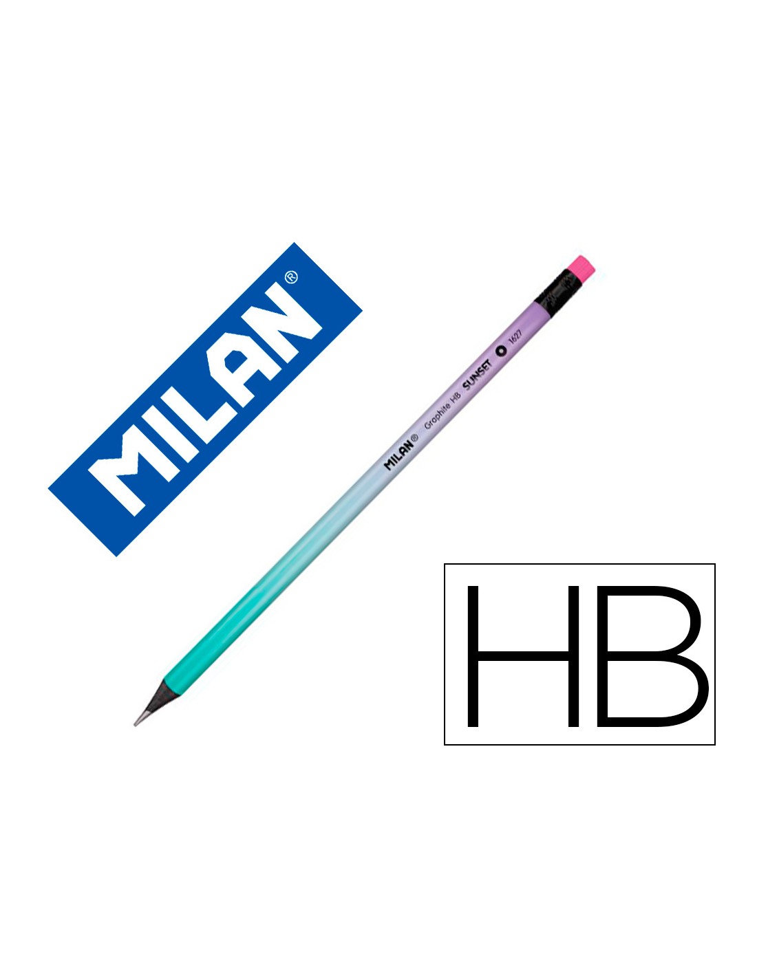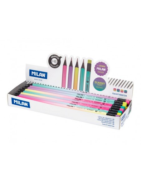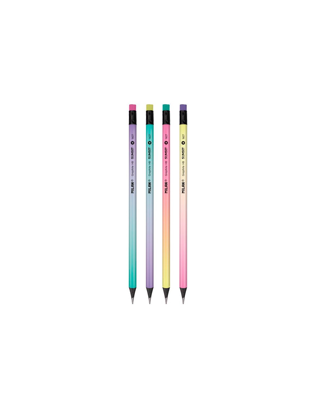 Lapices de grafito milan sunset hb madera negra de tilo con goma de borrar colores surtidos