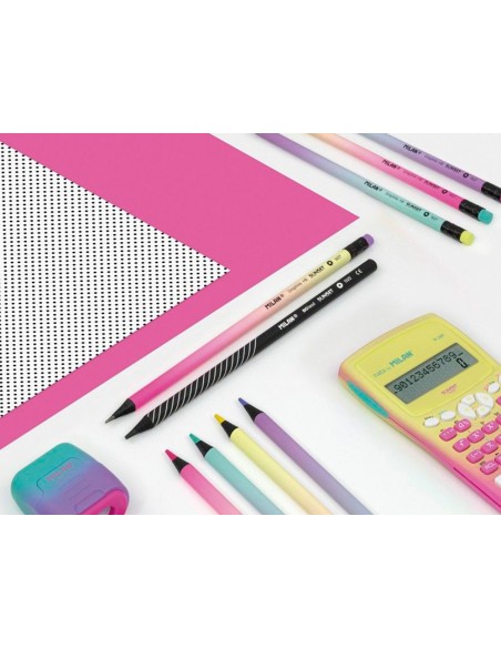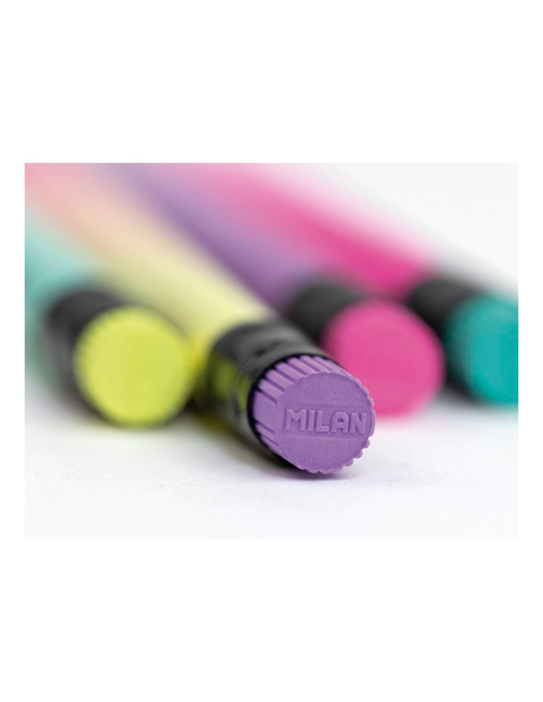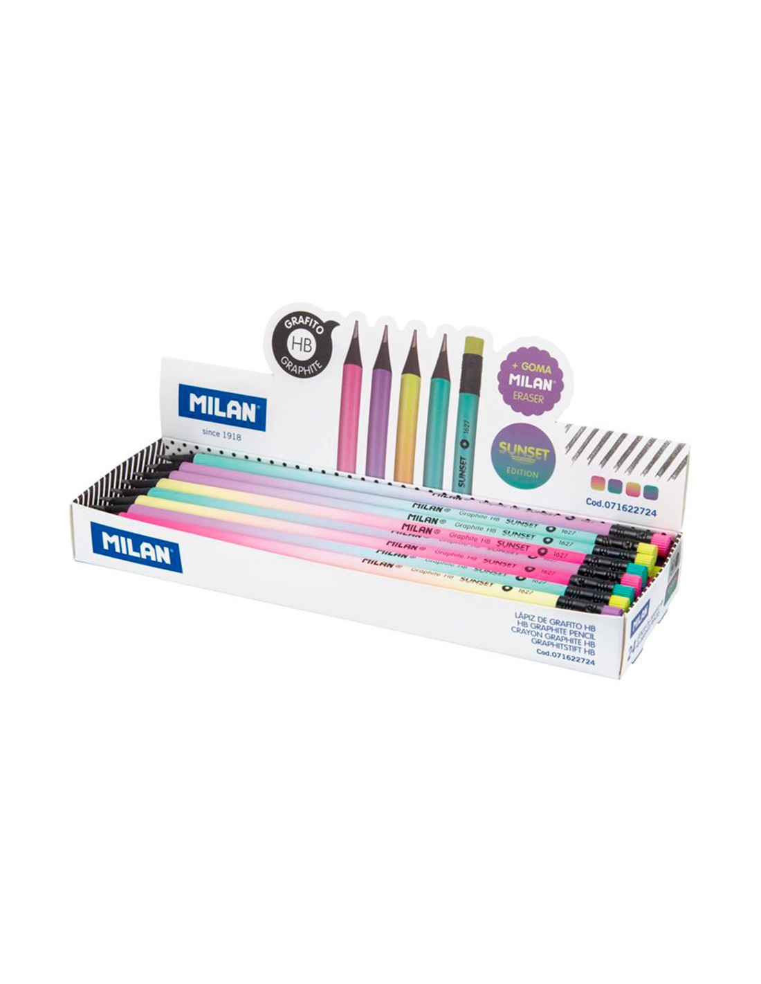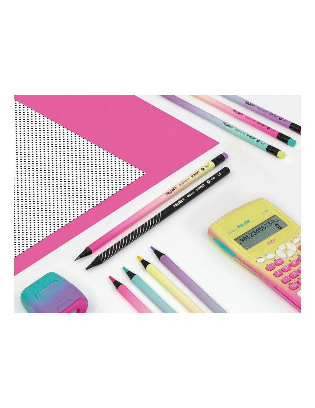 Lapices de grafito milan sunset hb madera negra de tilo con goma de borrar colores surtidos