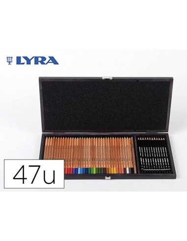 Set dibujo lyra estuche de madera con 47 piezas surtidas