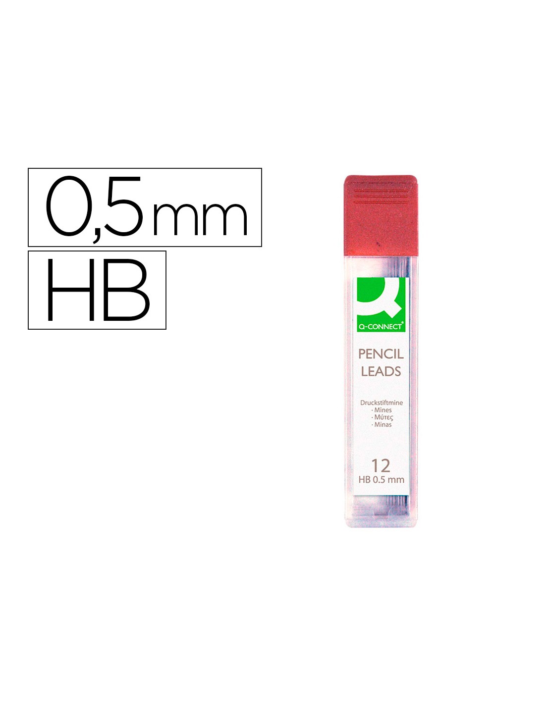 Minas q-connect grafito 0,5 mm hb estuche de 12 minas longitud 60 mm