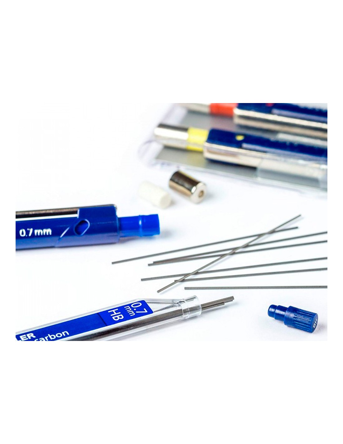 De grafito. Color negro intenso. Alta resistencia y flexibilidad. El estuche 12 minas.