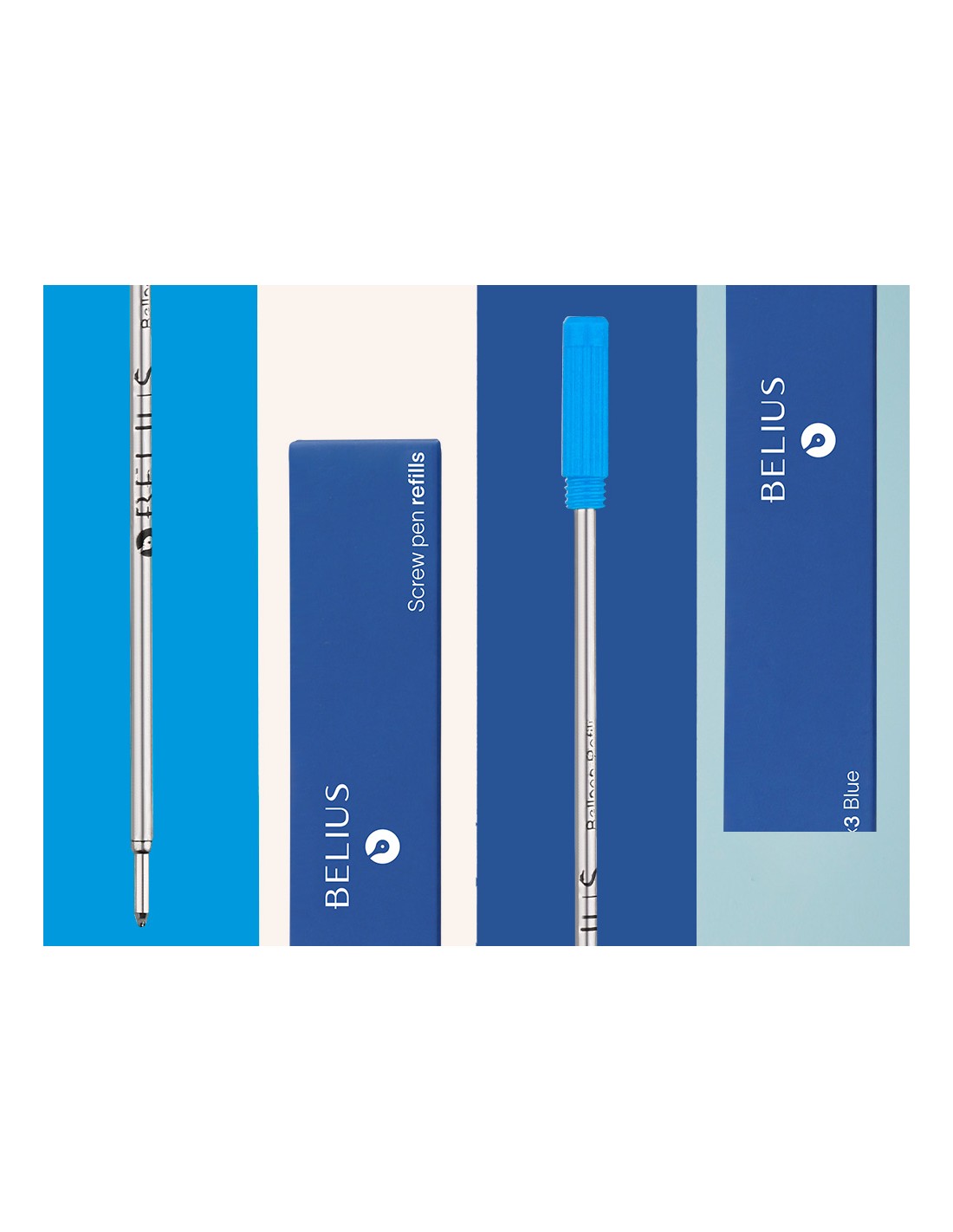 Recambio de bolígrafo de rosca Belius tamaño M. Color azul. Punta media de 1 mm para una escritura suave. Caja de 3 unidades. Made in Germany. Tinta de calidad elaborada en Alemania.