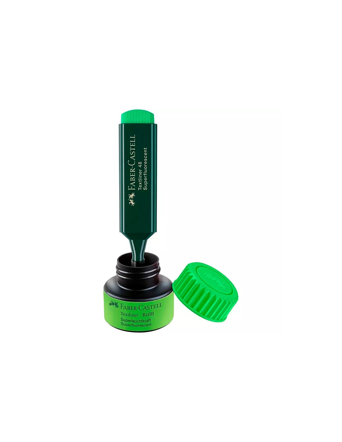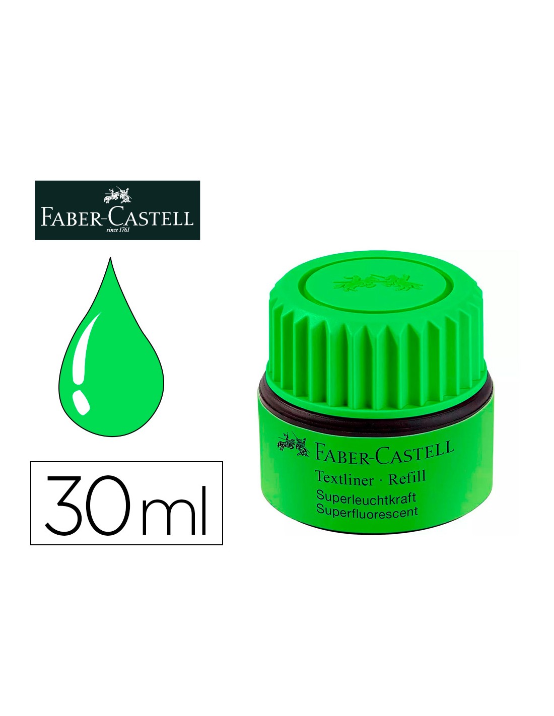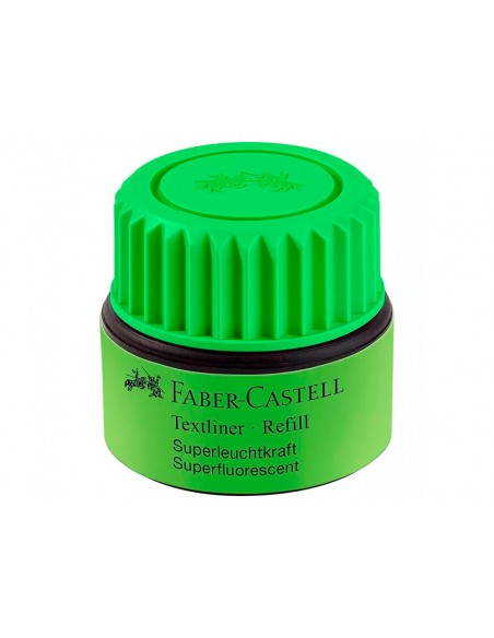 Tinta rotulador faber castell textliner fluorescente 1549 con sistema capilar color verde bote 30 ml