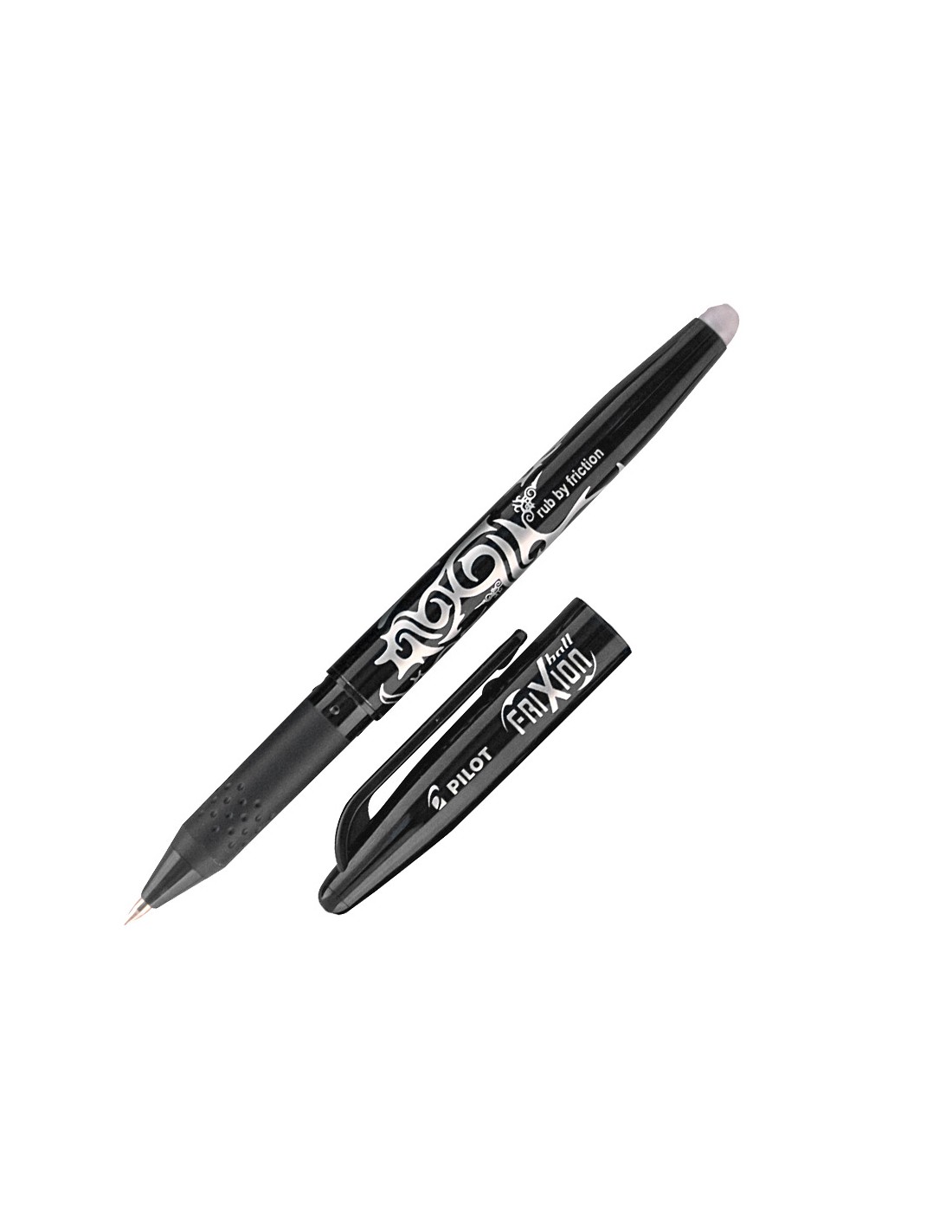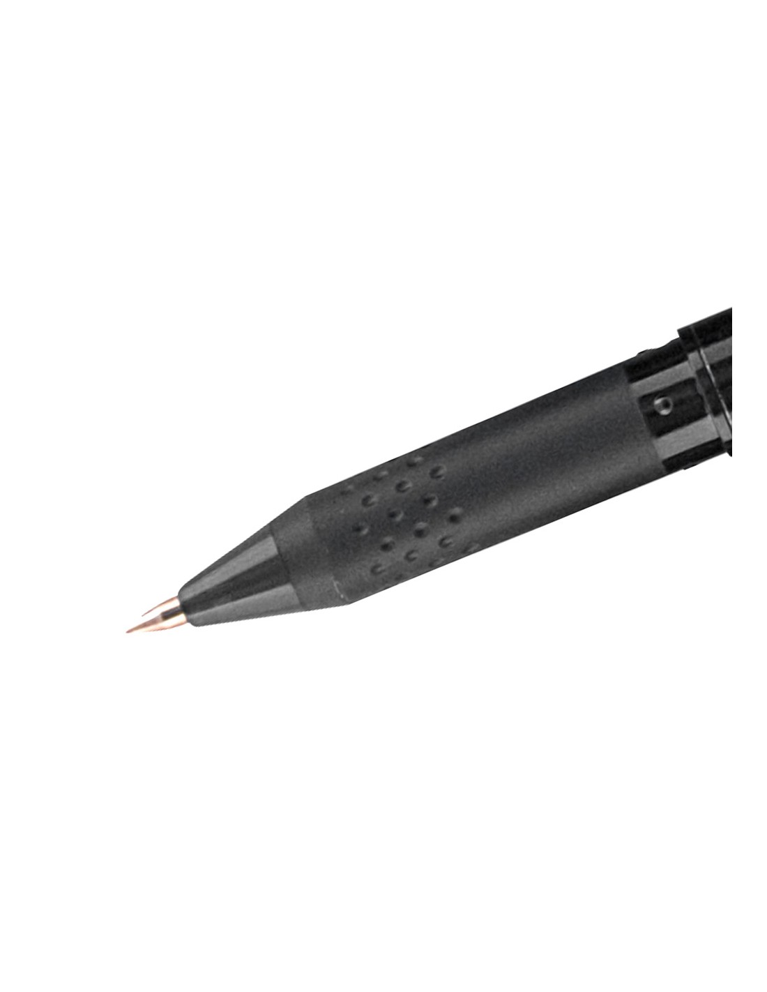 Bolígrafo con tinta gel. La tinta desaparece con un único y novedoso sistema de fricción. No mancha, no daña el papel, no deja restos. Punta de bola. Grip de caucho en la parte inferior. Cuerpo del color de la tinta. Punta de 0,7 mm. Trazo de 0,4 mm.