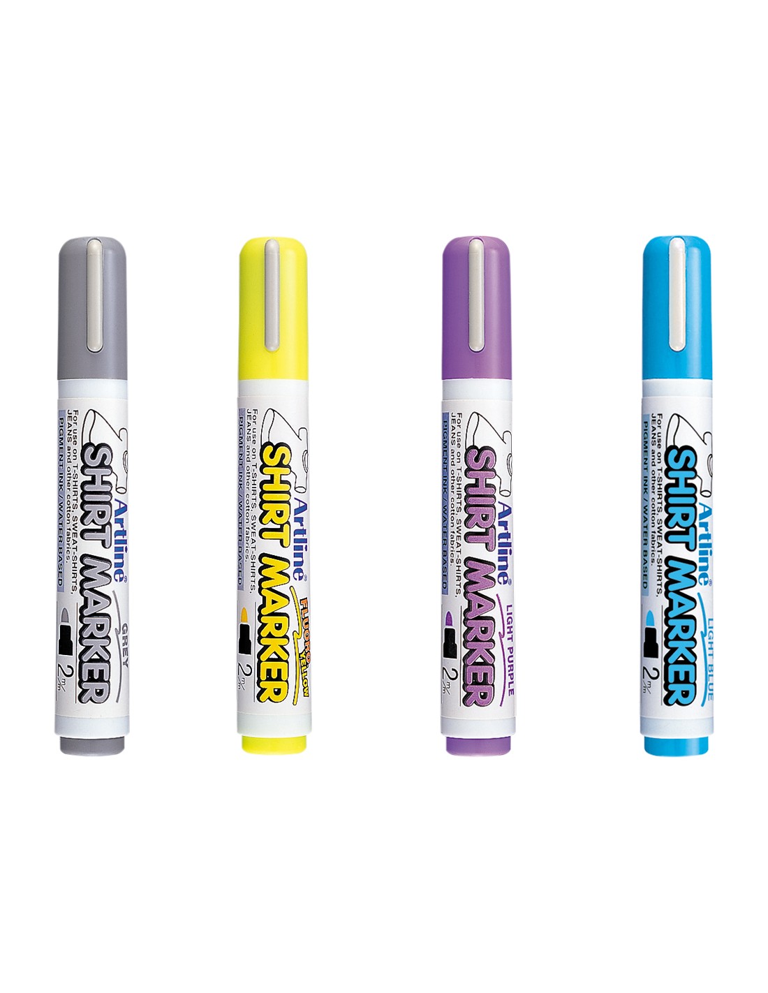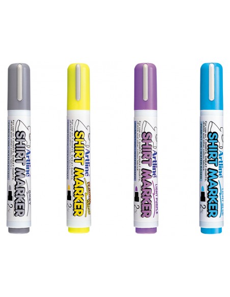 Rotulador artline camiseta ekt-2 amarillo gris celeste y violeta punta redonda 2 mm usoen camiseta caja de 4 unidades