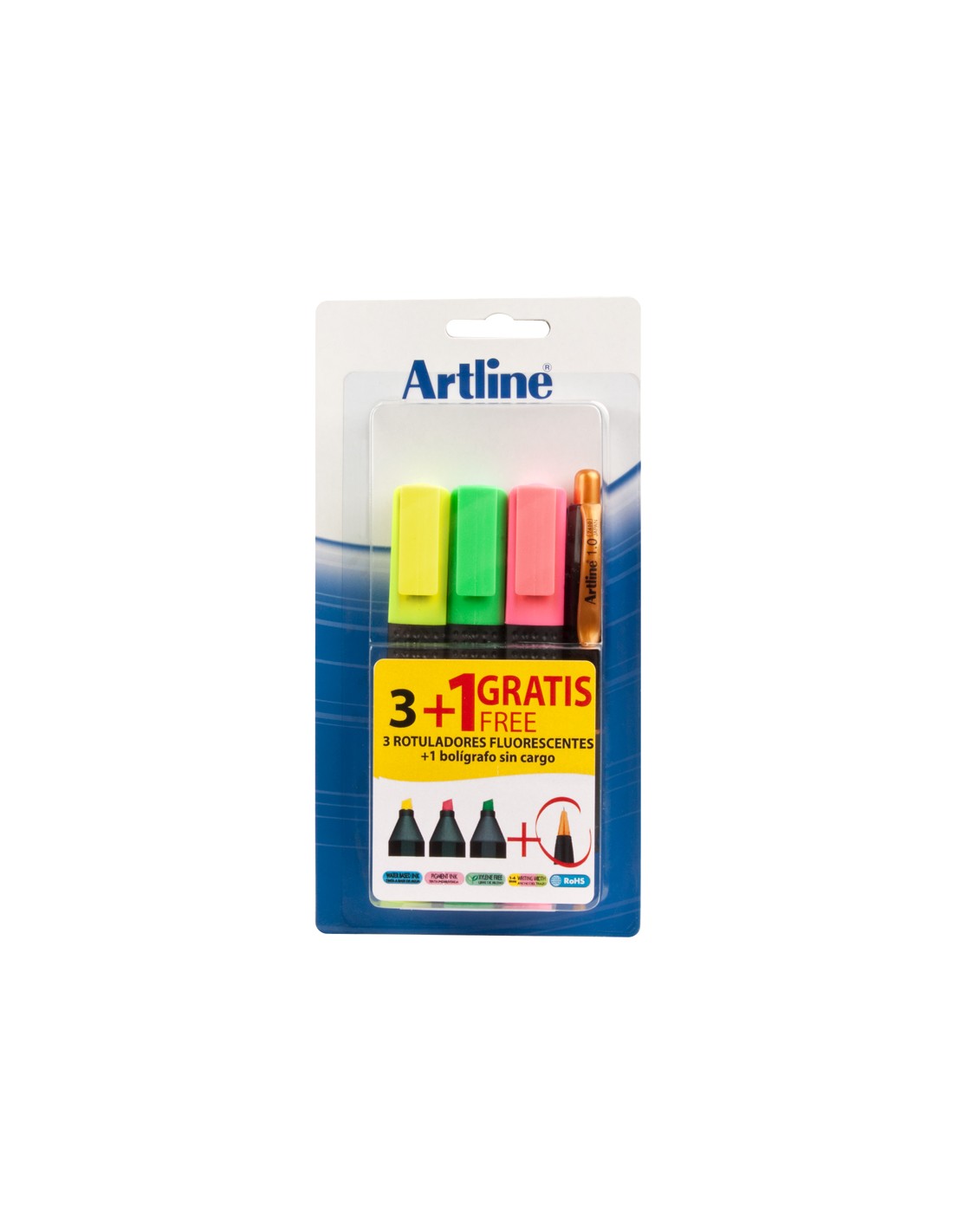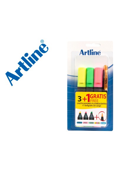 Rotulador artline fluorescente ek-660 blister de 3 unidades + 1 boligrafo serie 7000 sin cargo