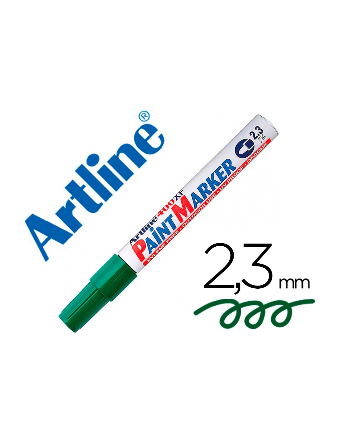 Rotulador artline marcador permanente ek-400 xf verde -punta redonda 2.3 mm -metal caucho y plastico