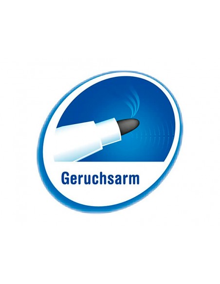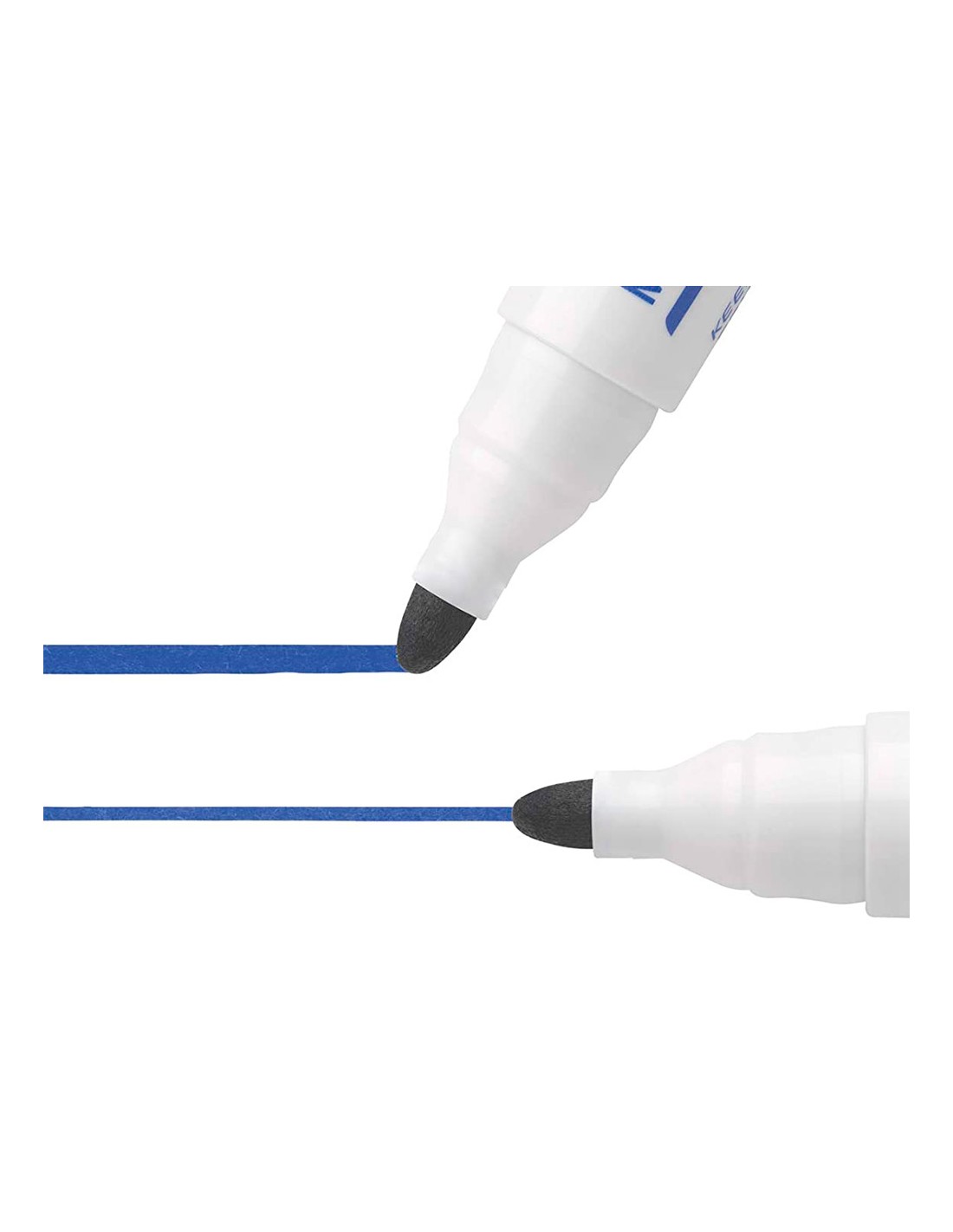 Rotulador para pizarra blanca con punta redonda cónica. Tinta a base de alcohol que genera menos olor. Se borran en seco fácilmente incluso después de varios días. Punta de 4,95 mm. Trazo de 1,4 mm.