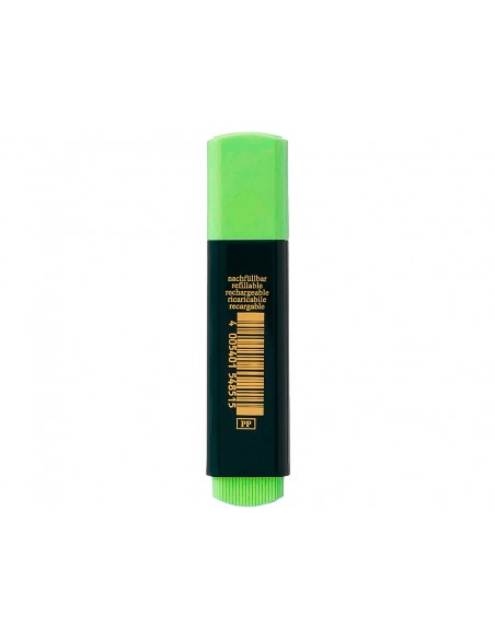 Marcador fluorescente con tinta a base de agua. Ideal para todo tipo de papel normal y especial. Respetuoso con el medio ambiente. Recargable con Texline 1549 Automatic Refill. Punta biselada. Trazo de 1,2 a 5 mm.
