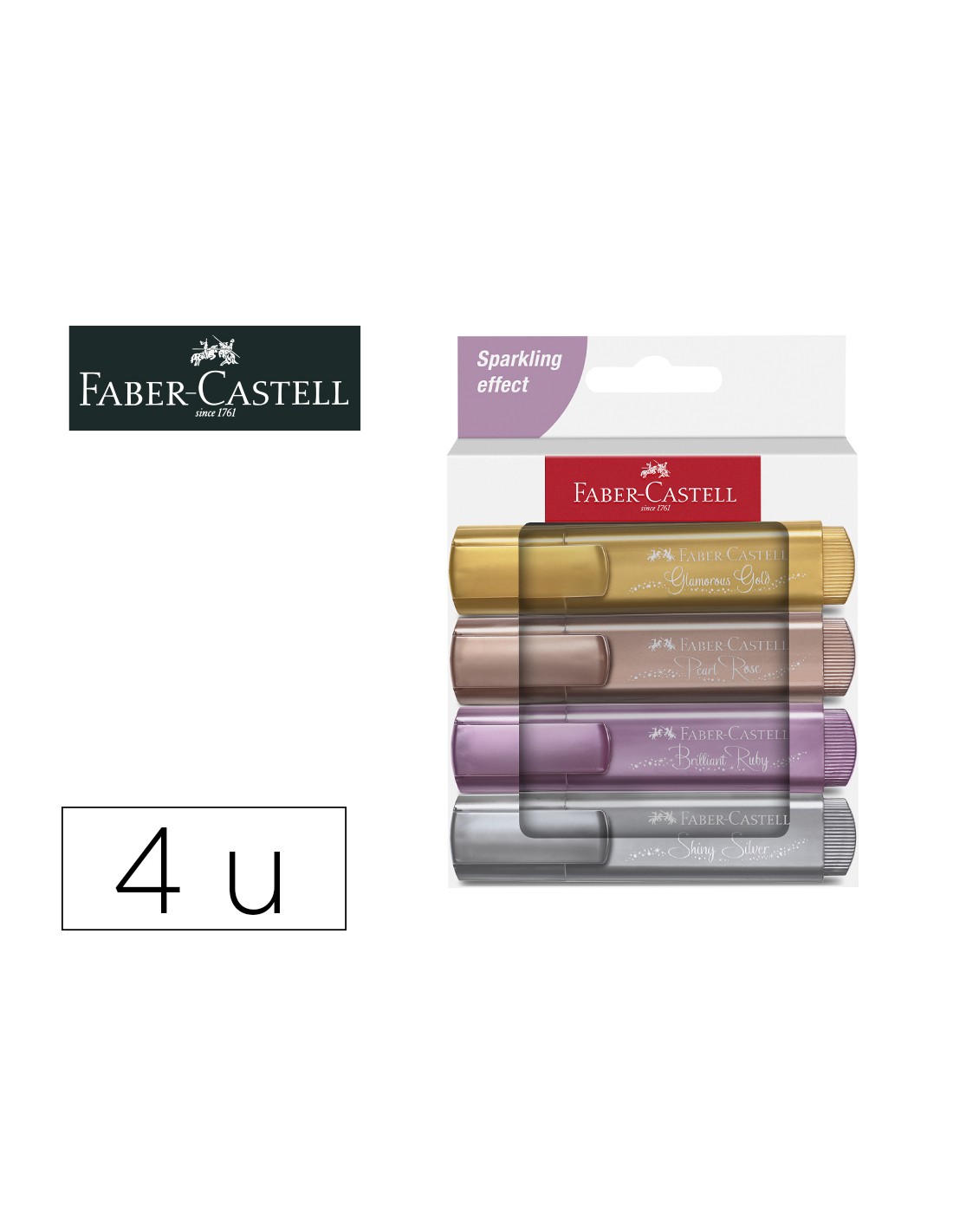 Rotulador faber fluorescente texliner 46 color metalico estuche 4 unidades colores surtidos