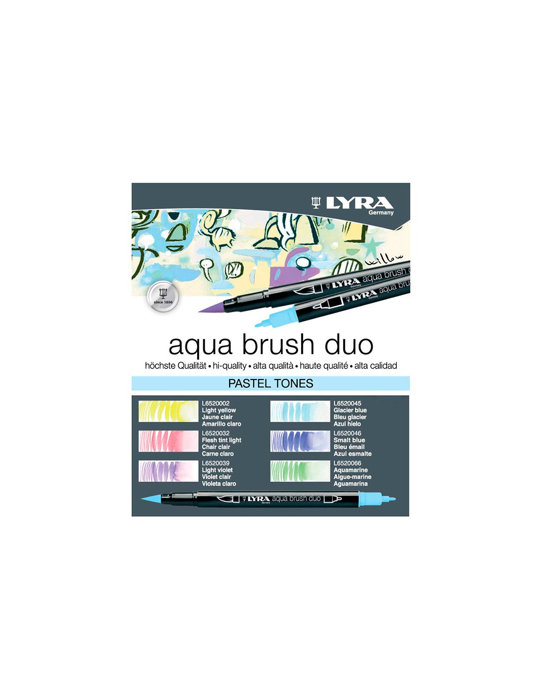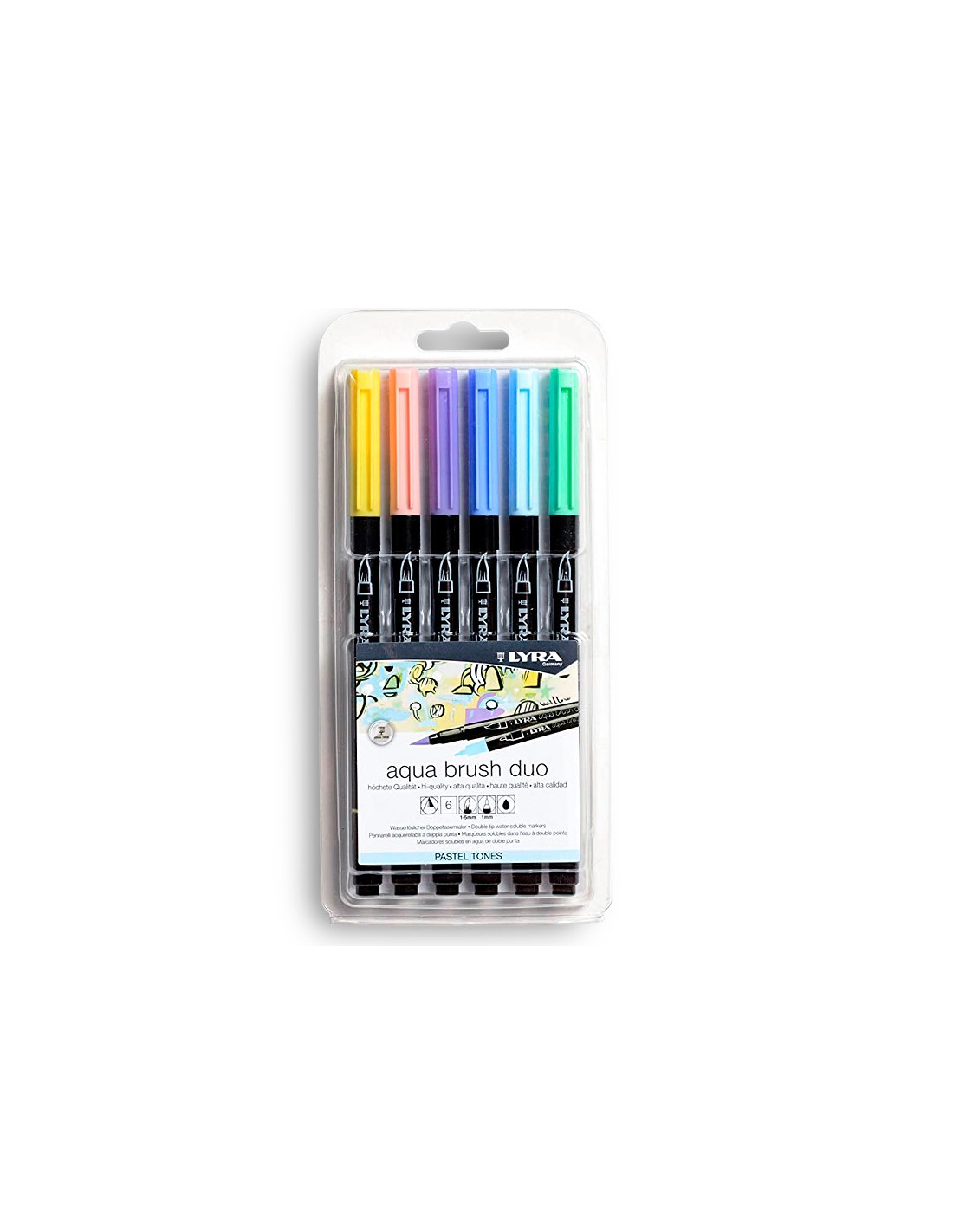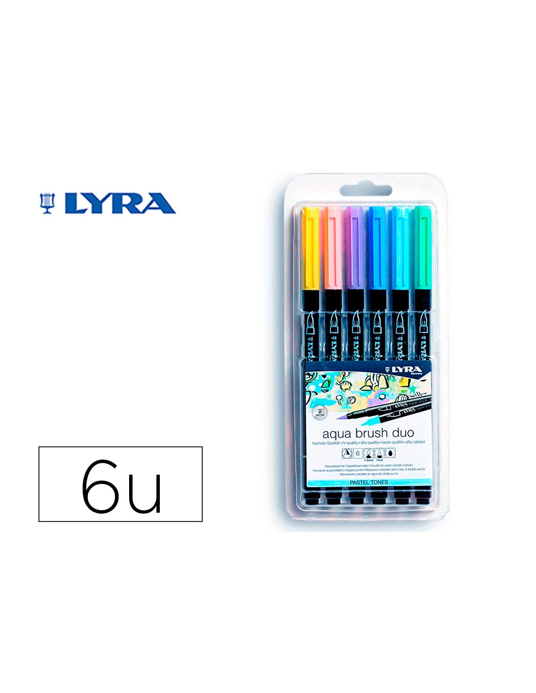 Rotulador lyra aqua brush acuarelable doble punta y pincel tonos pastel blister de 6 unidades surtidas