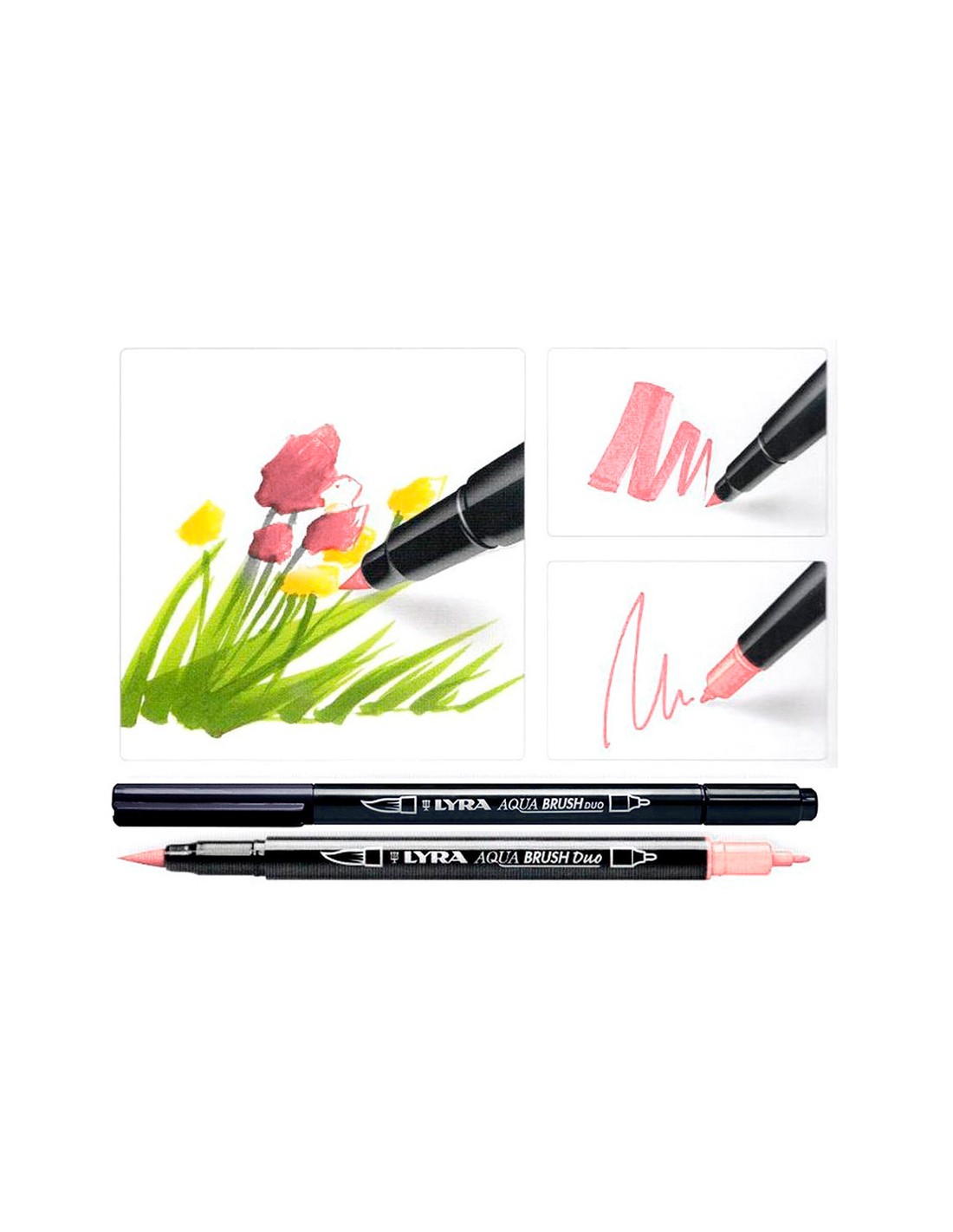 Rotulador de dos puntas de excelente calidad. La punta fina puede utilizarse para dibujos de precisión, en el dibujo de siluetas o en la ejecución de contornos y detalles. Su segunda punta es amplia y flexible como un pincel. Permite una pincelada plana, muy blanda y, al mismo tiempo, limpia y segura. Las fibras de nylon proporcionan a la punta ancha una excelente elasticidad para pintar sobre superficies extensas, al tiempo que dan estabilidad a la punta fina para trazos más finos y una escritura precisa.