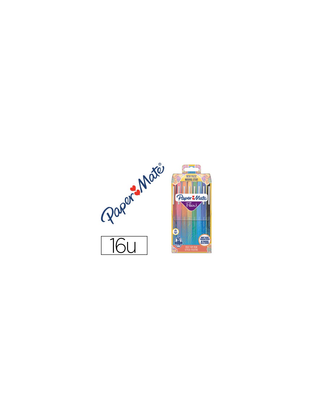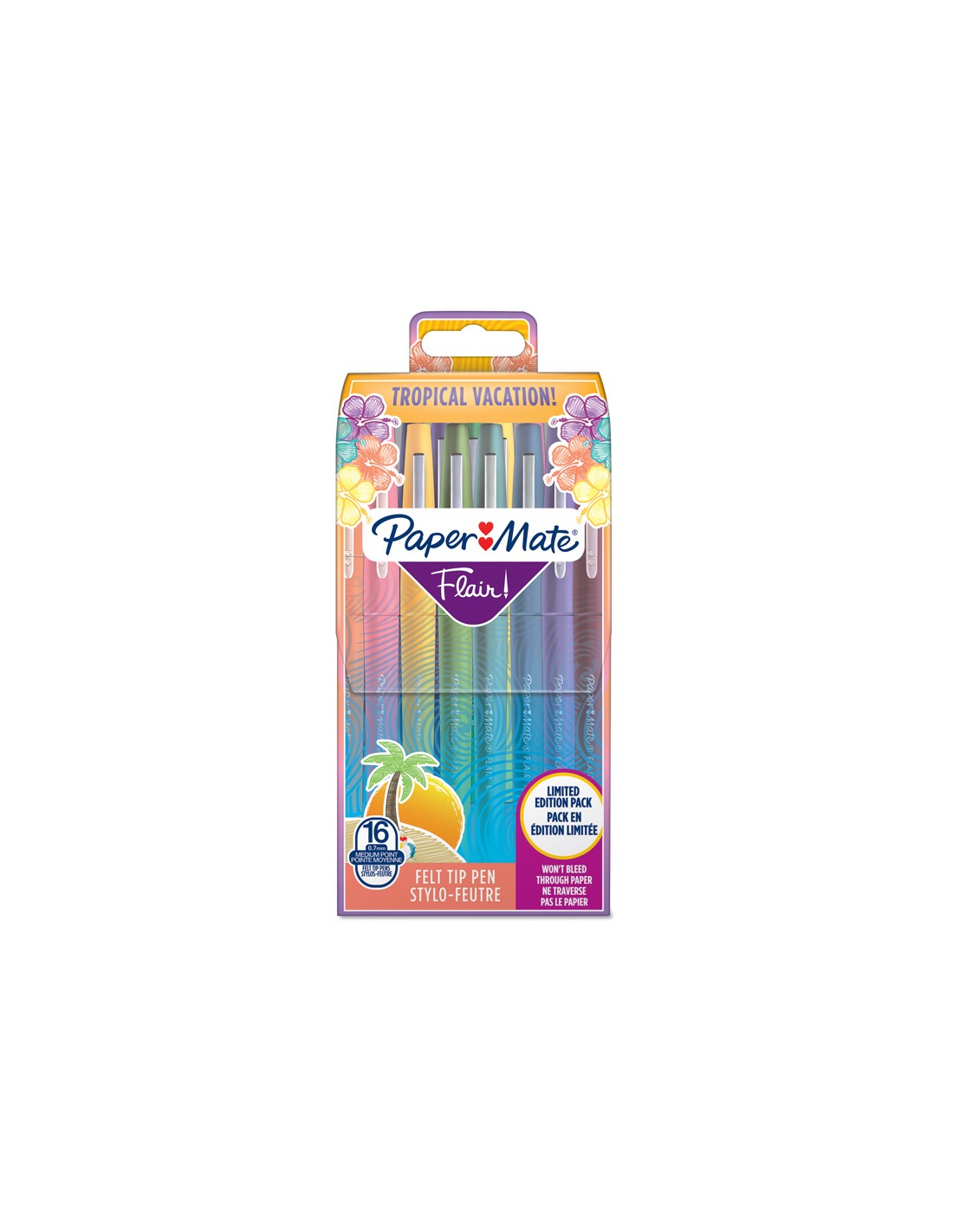 PAPERMATERotulador paper mate flair original punta fibra tropical estuche rigido de 16 unidades colores surtidos