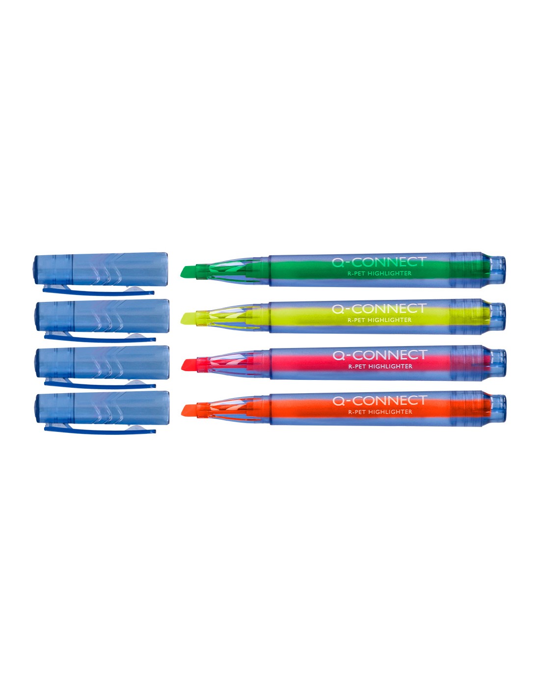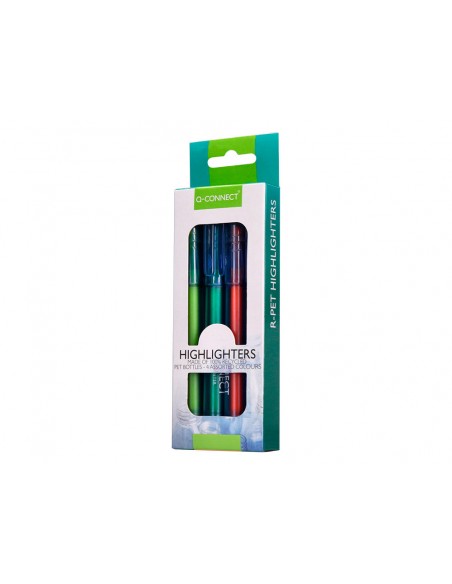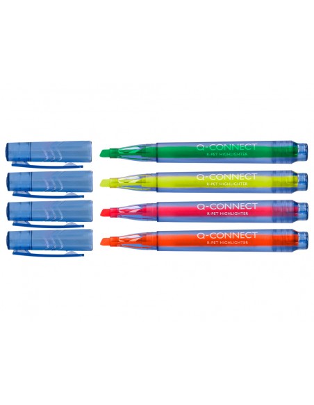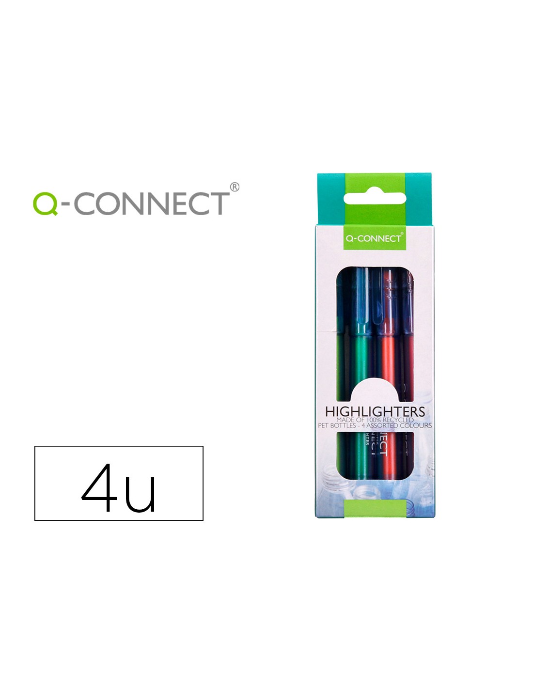 Rotulador q-connect fluorescente punta biselada fabricado pet reciclado caja de 4 unidades colores surtidos