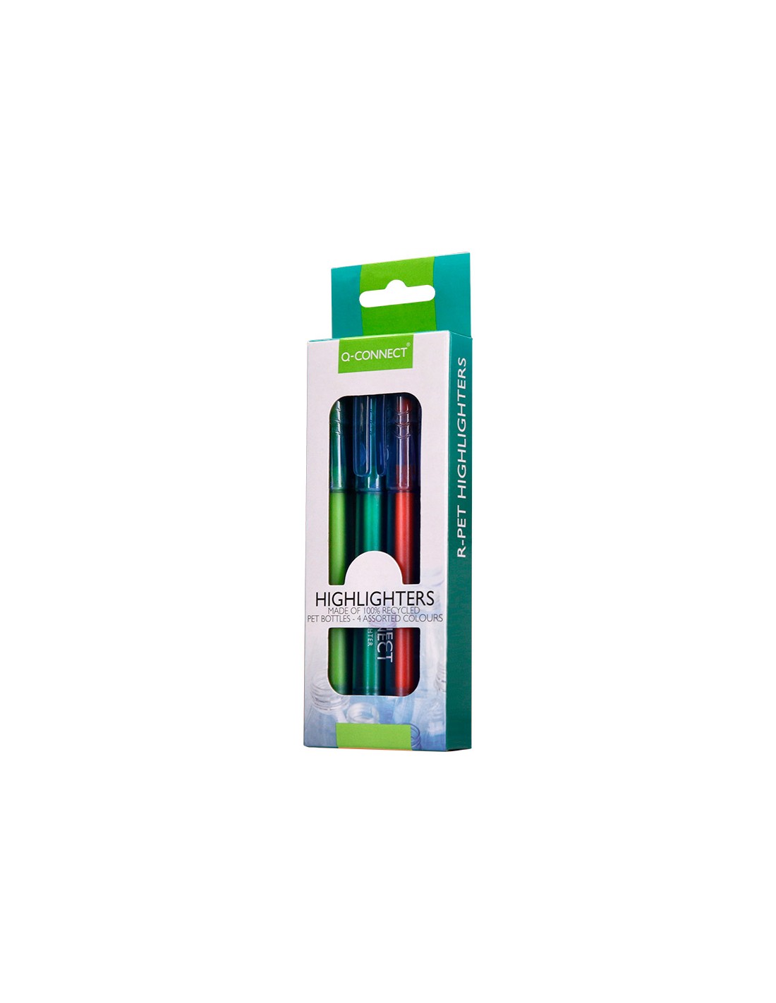 Rotulador fluorescente con punta biselada para resaltar información importante. Adecuado para la mayoría de los papeles. Cuerpo de plástico reciclado procedente de botellas de agua recicladas. 4 Colores vibrantes amarillo, naranja, rosa y verde. Estuche de 4 rotuladores colores surtidos.