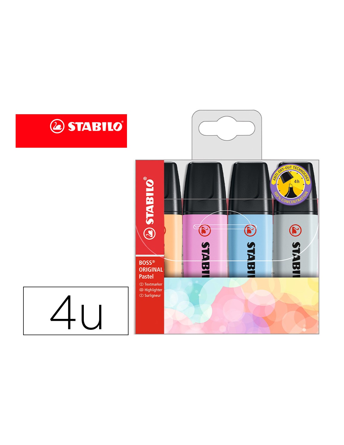 Rotulador stabilo boss fluorescente 70 pastel estuche de 4 unidades colores