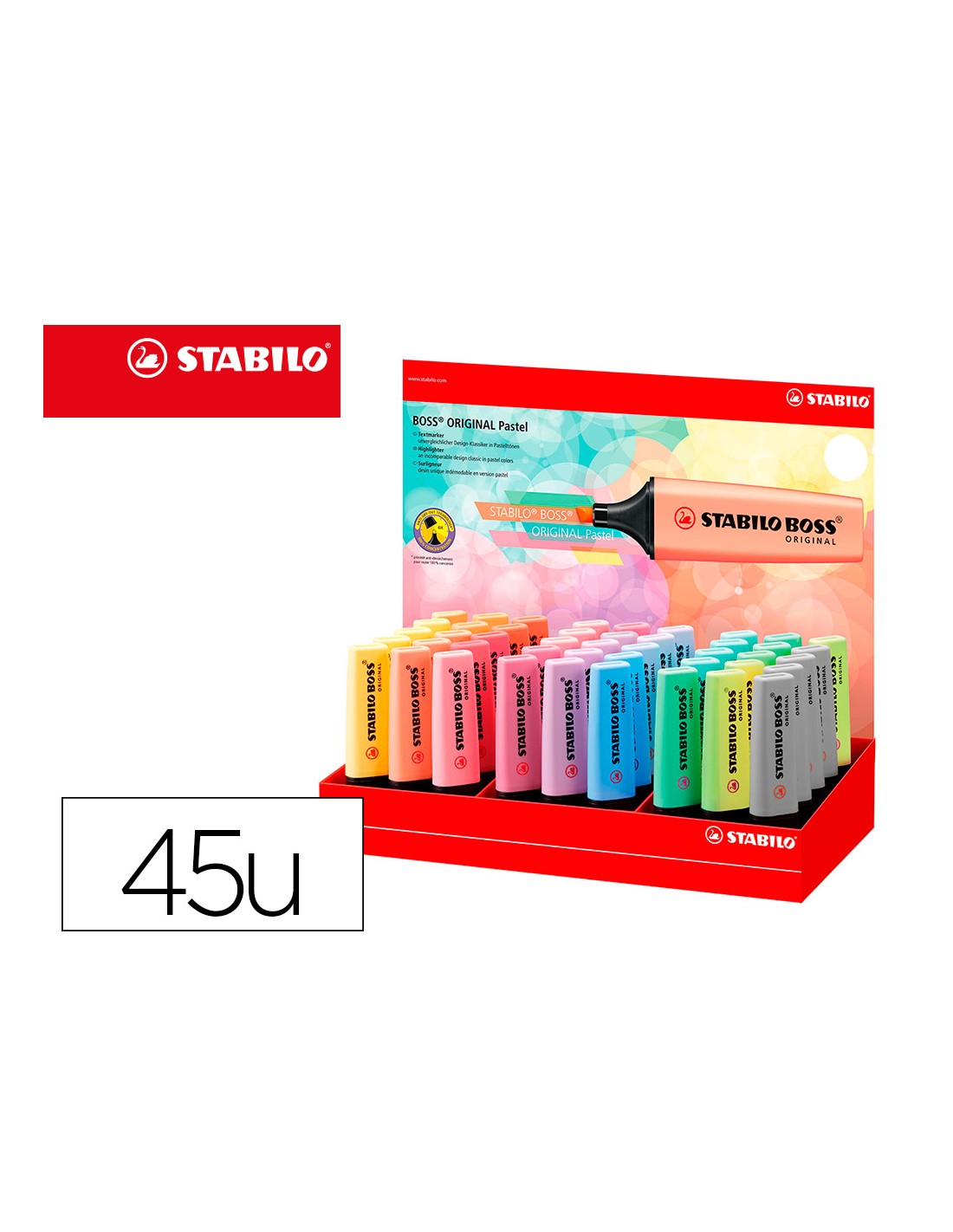 Rotulador stabilo boss fluorescente 70 pastel expositor de 45 unidades colores surtidos