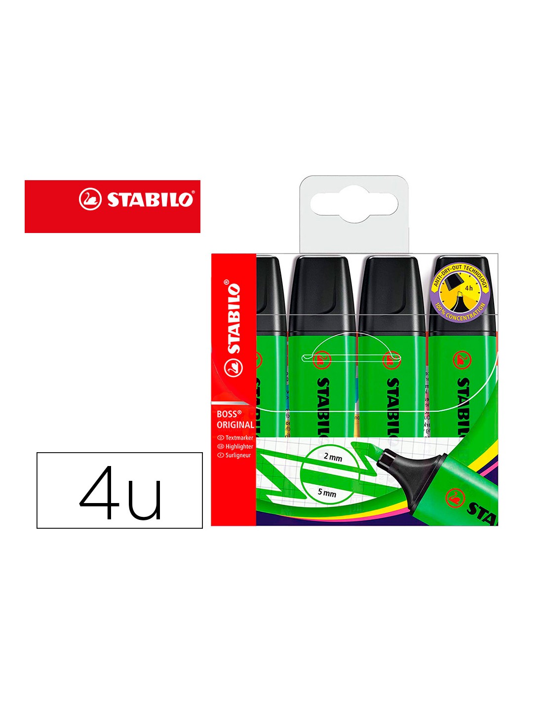 Rotulador stabilo boss fluorescente 70 verde estuche de 4 unidades