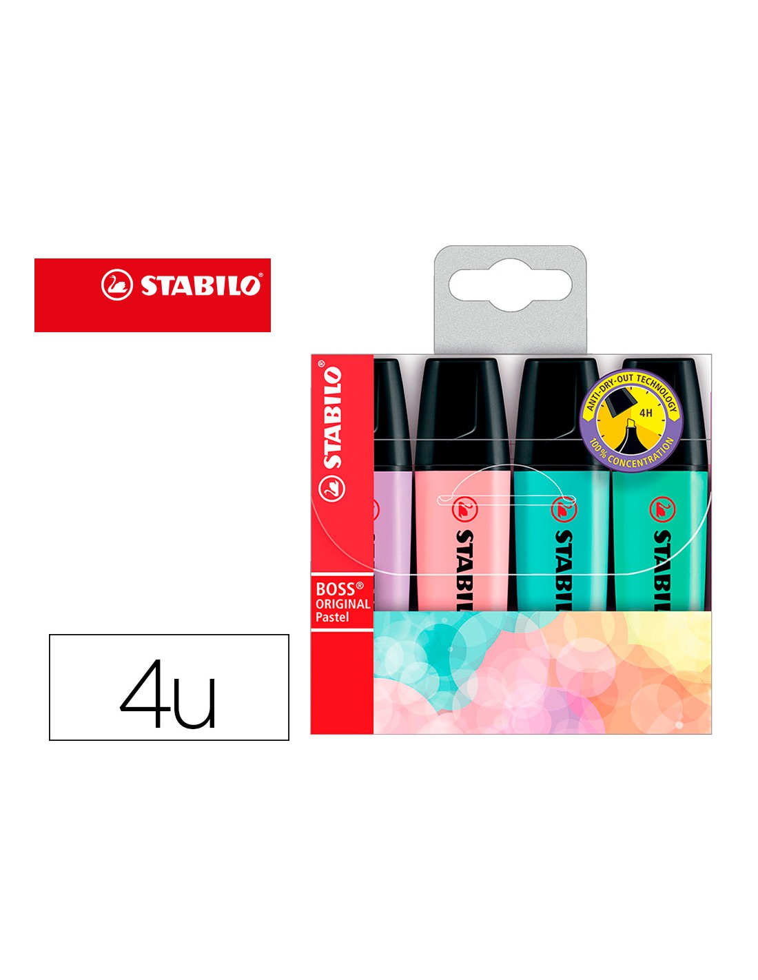 Rotulador stabilo boss pastel fluorescente 70 estuche de 4 unidades colores surtidos