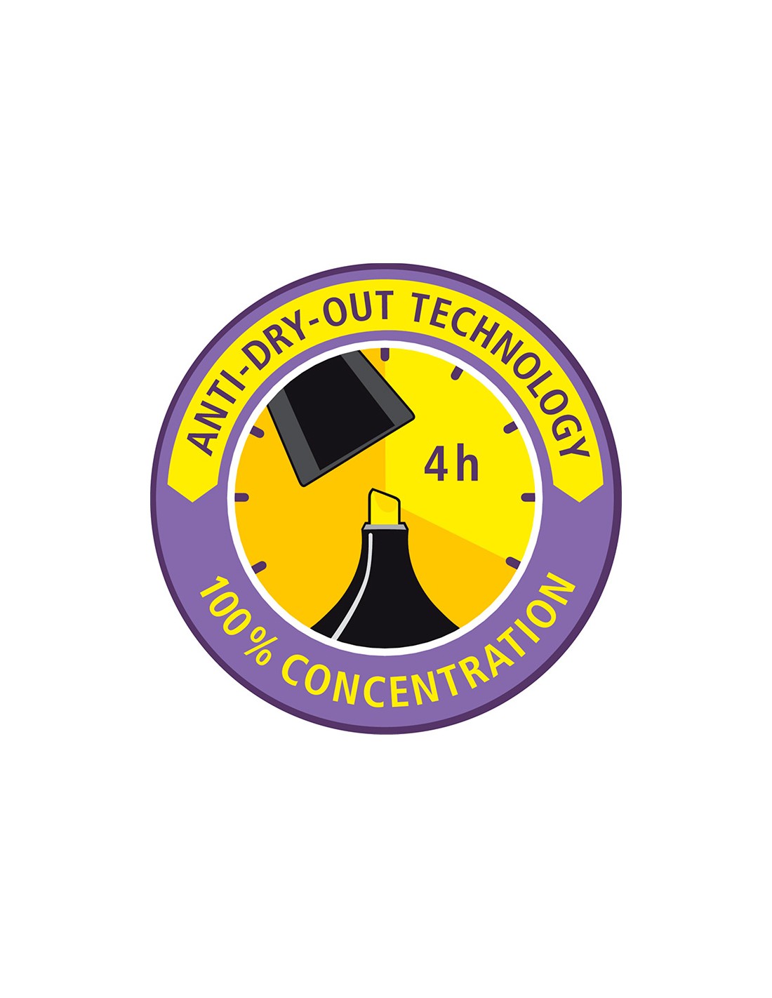 Rotulador fluorescente antisecado, hasta 4 horas destapado sin secarse para poder concentrarse en el trabajo. Resistente a la luz en todo tipo de papel normal, térmico y fotocopias. Punta biselada. Trazo de 2 a 5 mm.