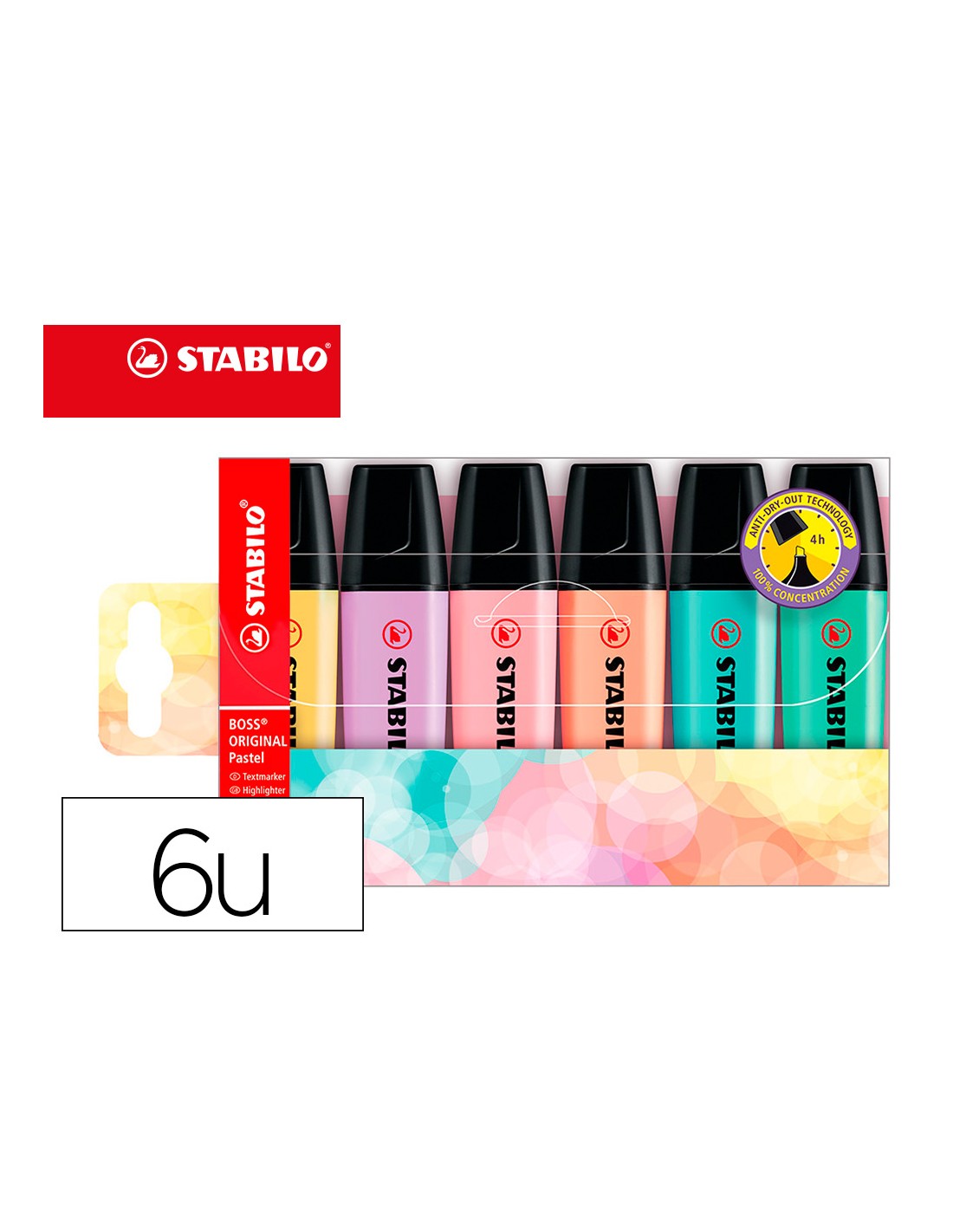 Rotulador stabilo boss pastel fluorescente 70 estuche de 6 unidades surtidas