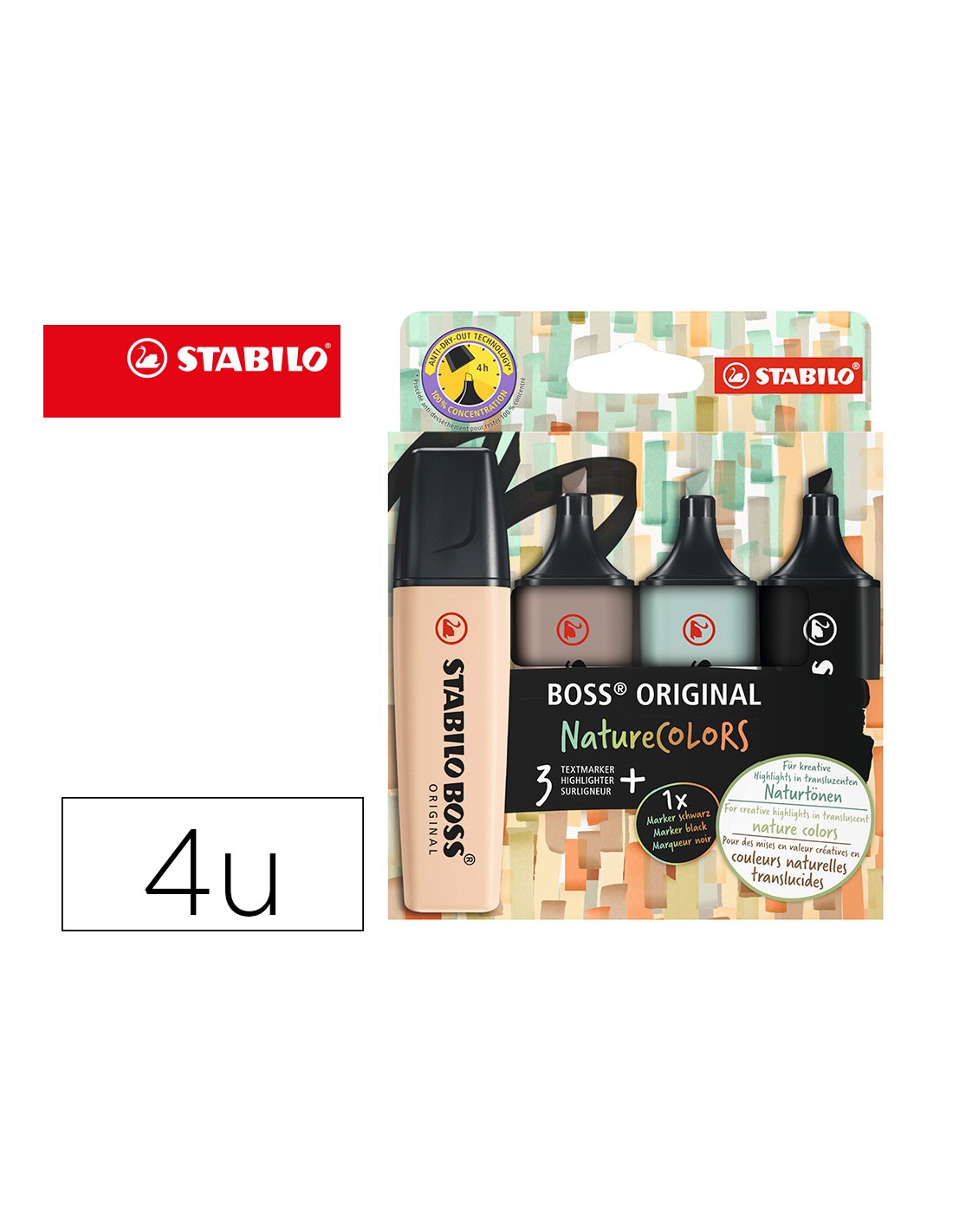 Rotulador stabilo boss pastel fluorescente 70 nature colors estuche de 4 unidades colores surtidos