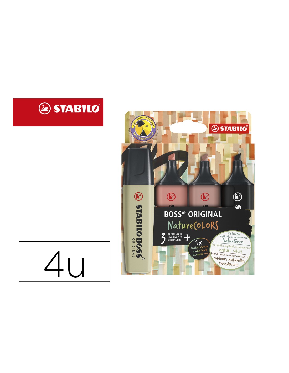 Rotulador stabilo boss pastel fluorescente nature 70 colors estuche de 4 unidades colores surtidos