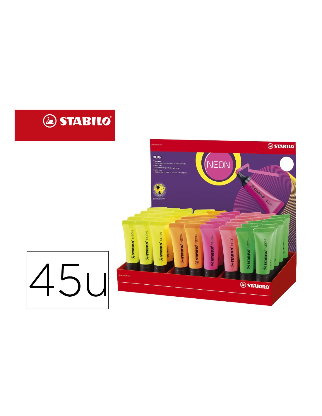 Rotulador stabilo fluorescente 72 neon expositor de 45 unidades colores surtidos