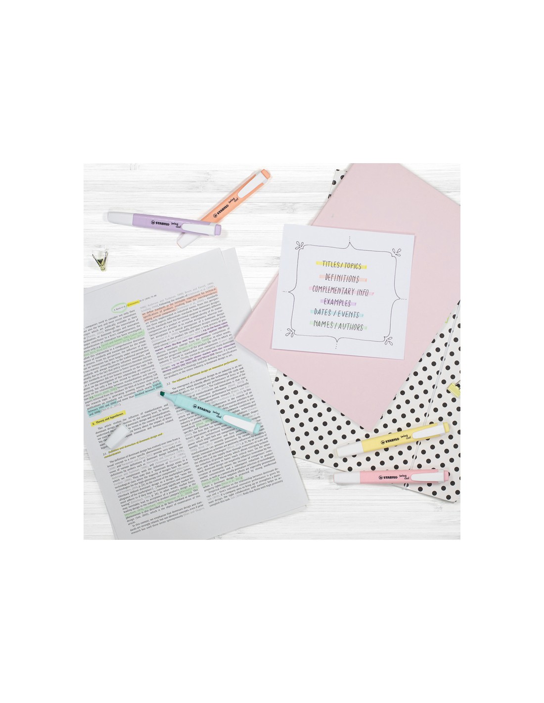 Marcador fluorescente plano, de bolsillo, con práctico clip. Grip anti-deslizante, con acabado pastel. 2 anchos de trazo 1 + 4 mm. Tinta con base alagua. Tapón ventilado. Tecnología Anti-Secado, 4 horas protección anti-se cado para concentrarse en el trabajo.