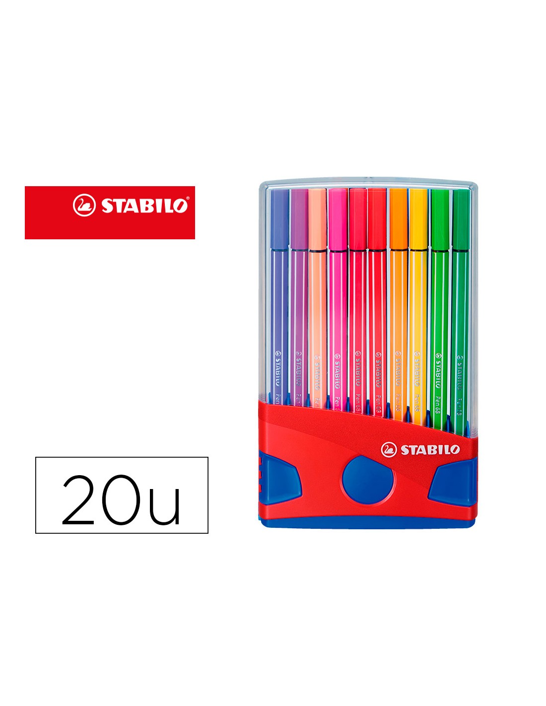 Rotulador stabilo punta de fibra pen 68 color parade estuche de 20 unidades colores surtidos