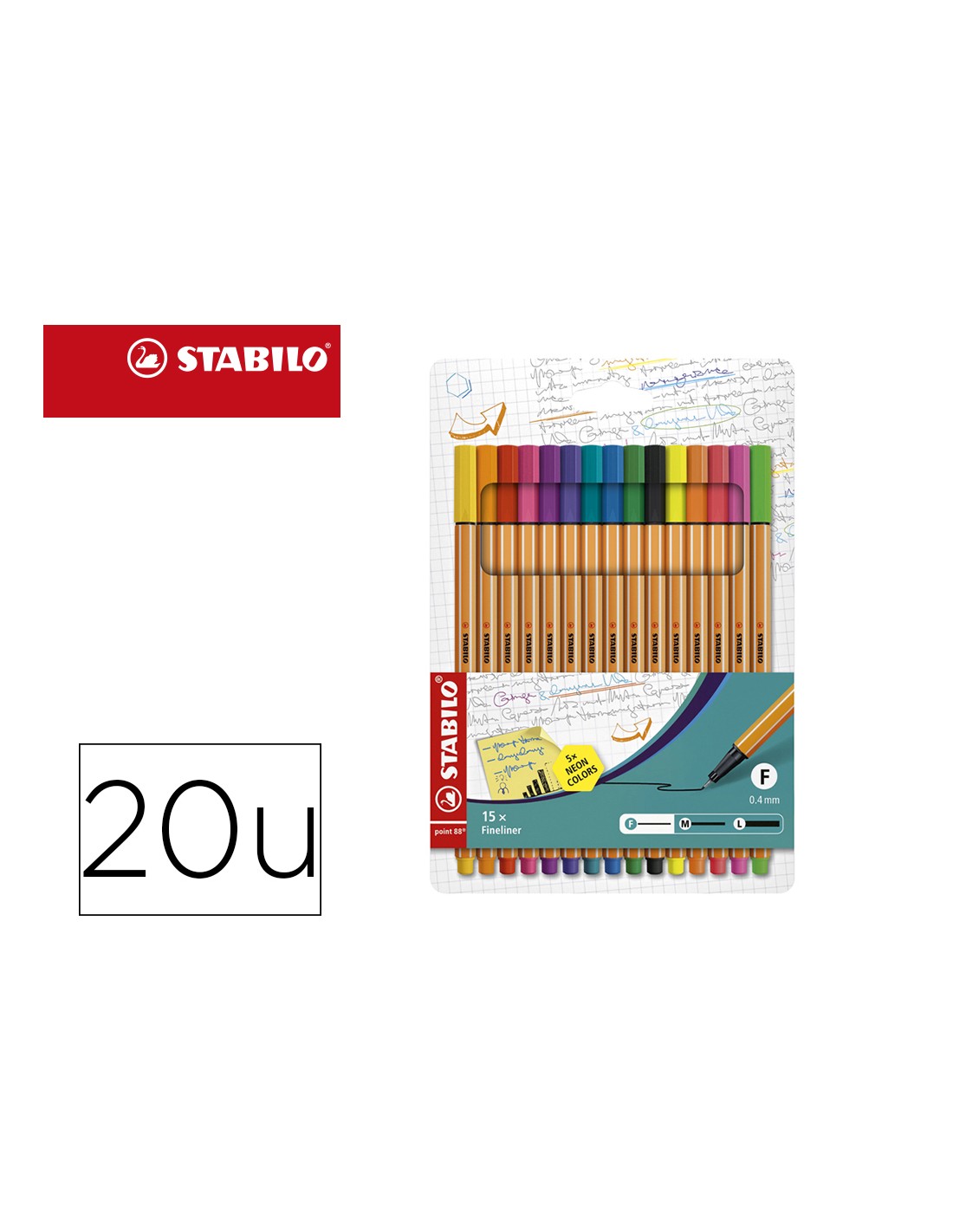 Rotulador stabilo punta de fibra point 88 estuche de 15 unidades colores surtidos + 5 colores neon